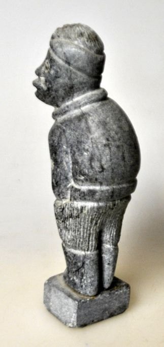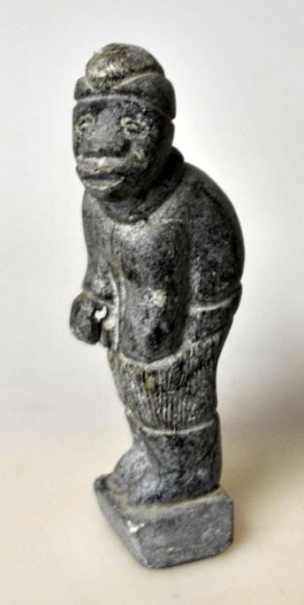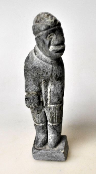 Grönländische Specksteinfigur, 1985. Ein stehender Mann. Signiert ML 85. Höhe: 11,3 cm.Bestellnummer: 28593