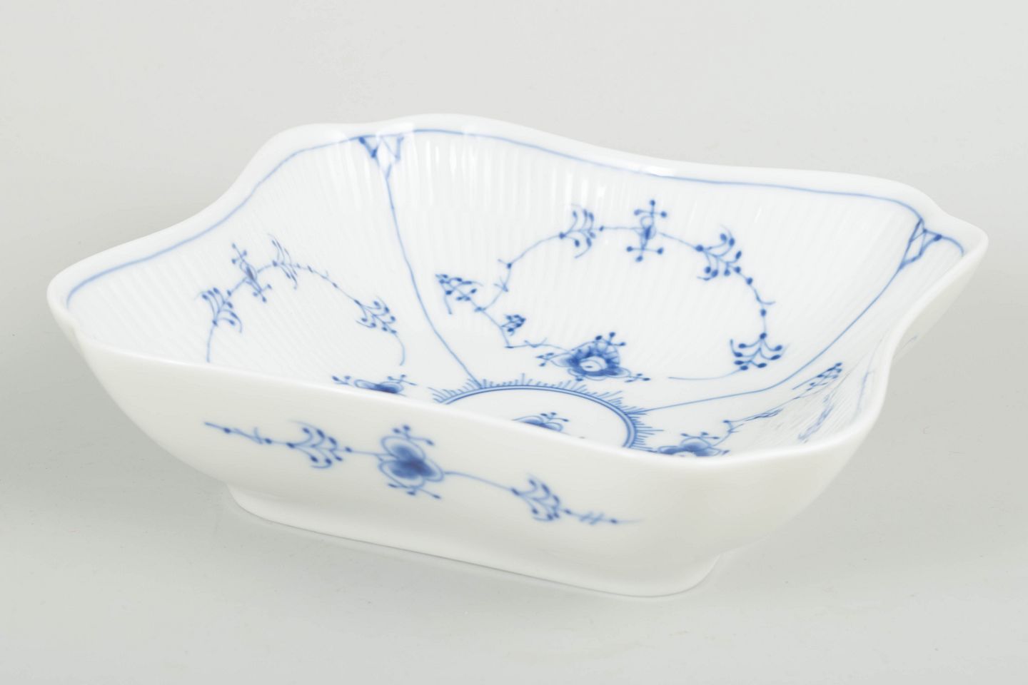 Royal Copenhagen musselmalet riflet, model 1/26.Firkantet skål, 1980’erne.