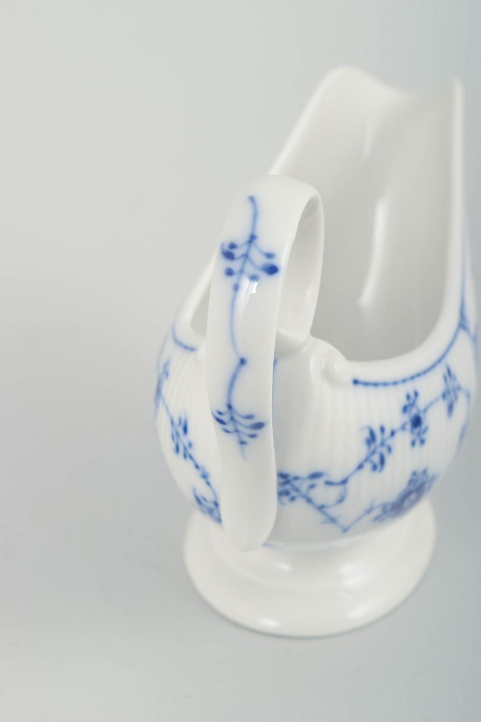 Royal Copenhagen musselmalet riflet, model 1/308 saucekande.Klassisk saucekande i musselmalet porcelæn med elegant svungen hank og håndmalet koboltblå dekoration på riflet korpus. produktion.