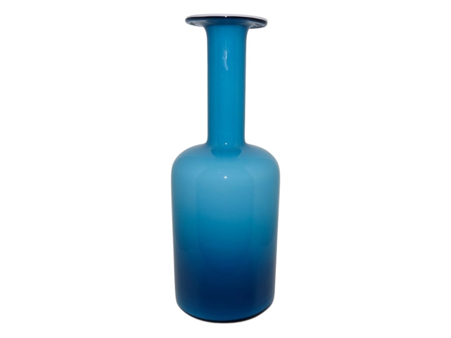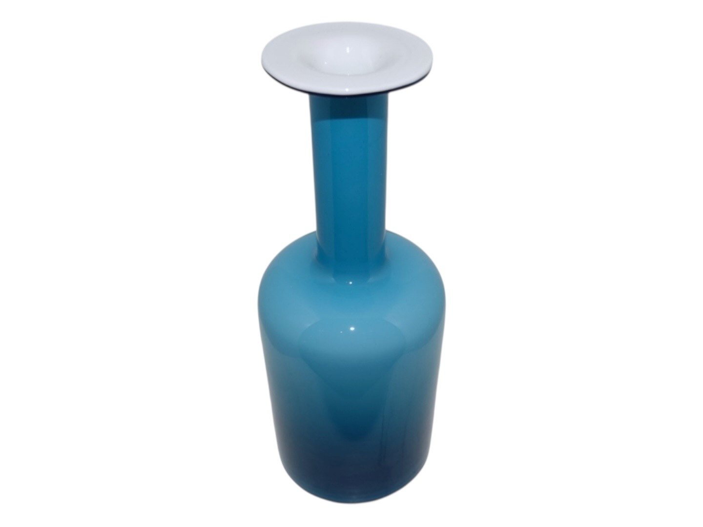 Holmegaard vase i blåt og hvidt opalglas.Designet af Otto Brauer i 1962.