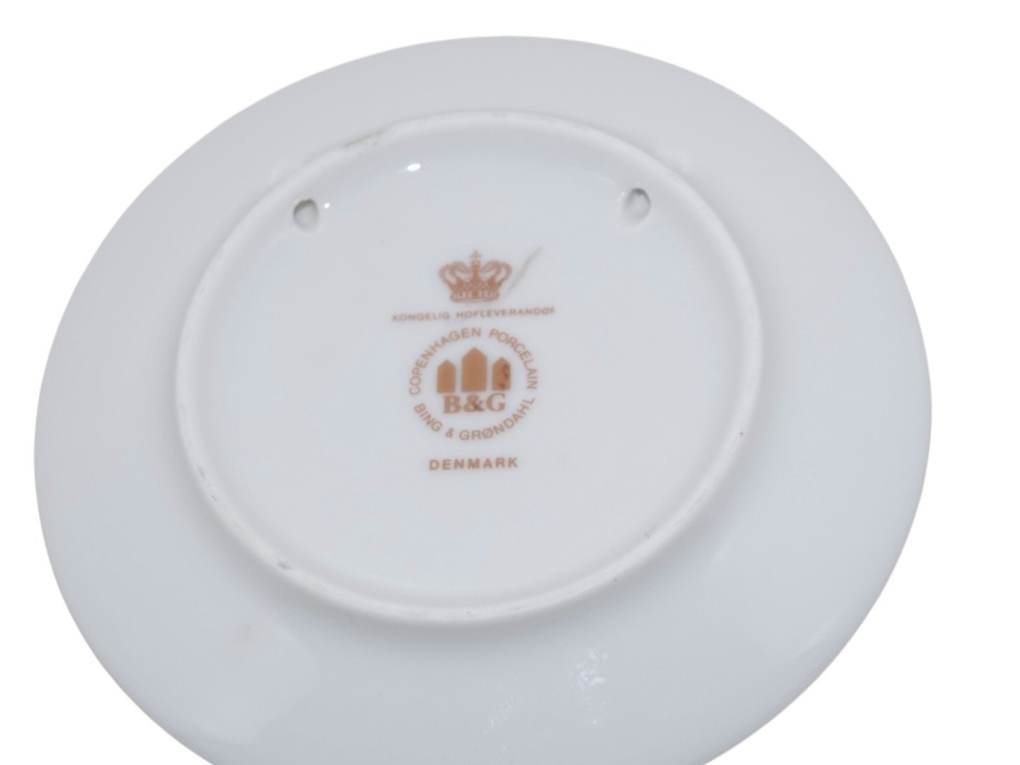 Bing & Grøndahl, lille asiet med julenisse der bager æbleskiver.Der er huller til ophæng.