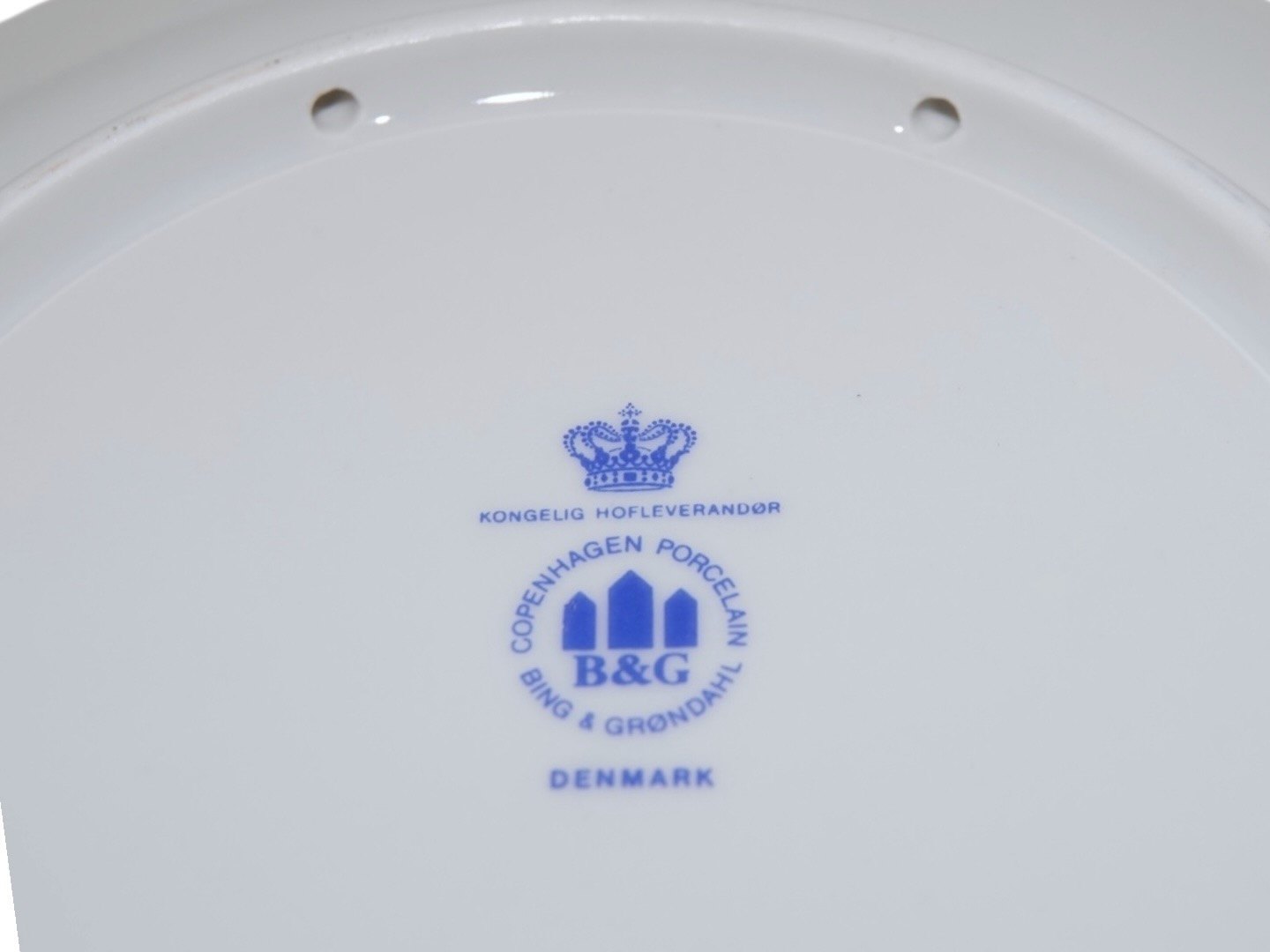 Bing & Grøndahl / Royal Copenhagen (En tallerken er B&G og en er RC) julestel, stor kagetallerken med julenisse, der skal til at bage Der også huller til ophæng.1. sortering.