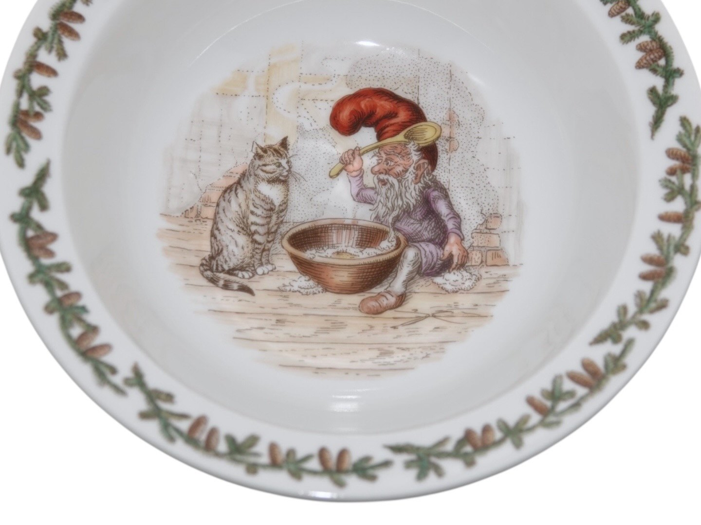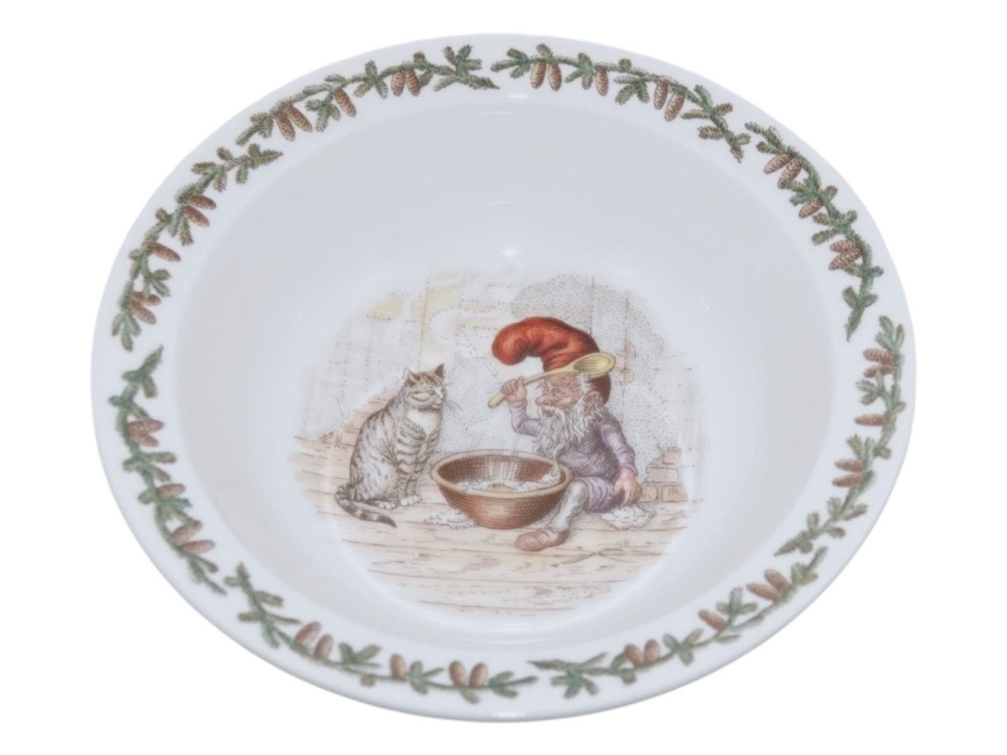 Royal Copenhagen Peters Christmas, bowl for porridge.Decorations by artists Johan Krohn and Pietro Krohn.