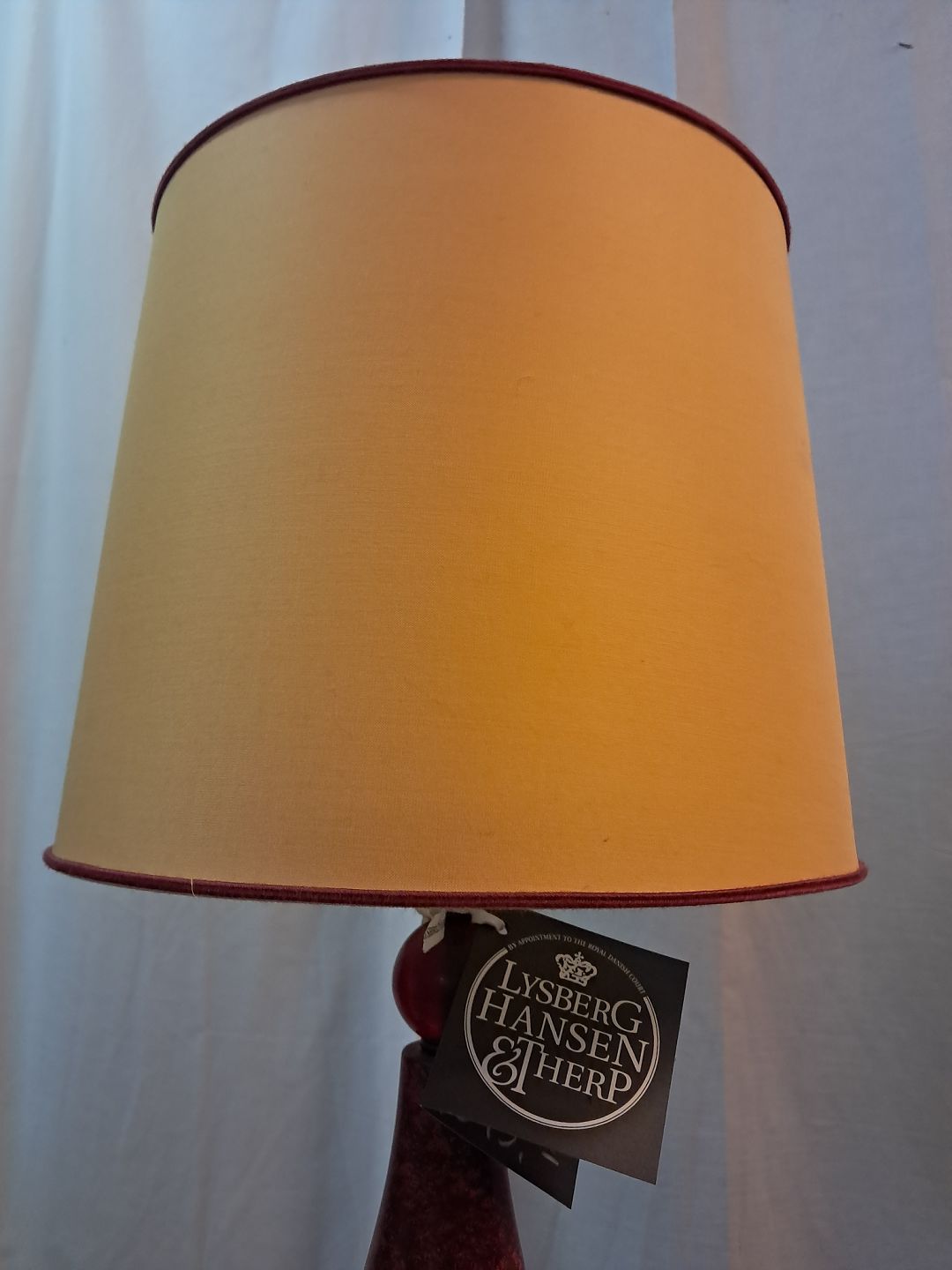 2 Lysberg Hansen og Therp bordlamper i pocelæn med skærme, fra 2000erne.De har brugsspor.