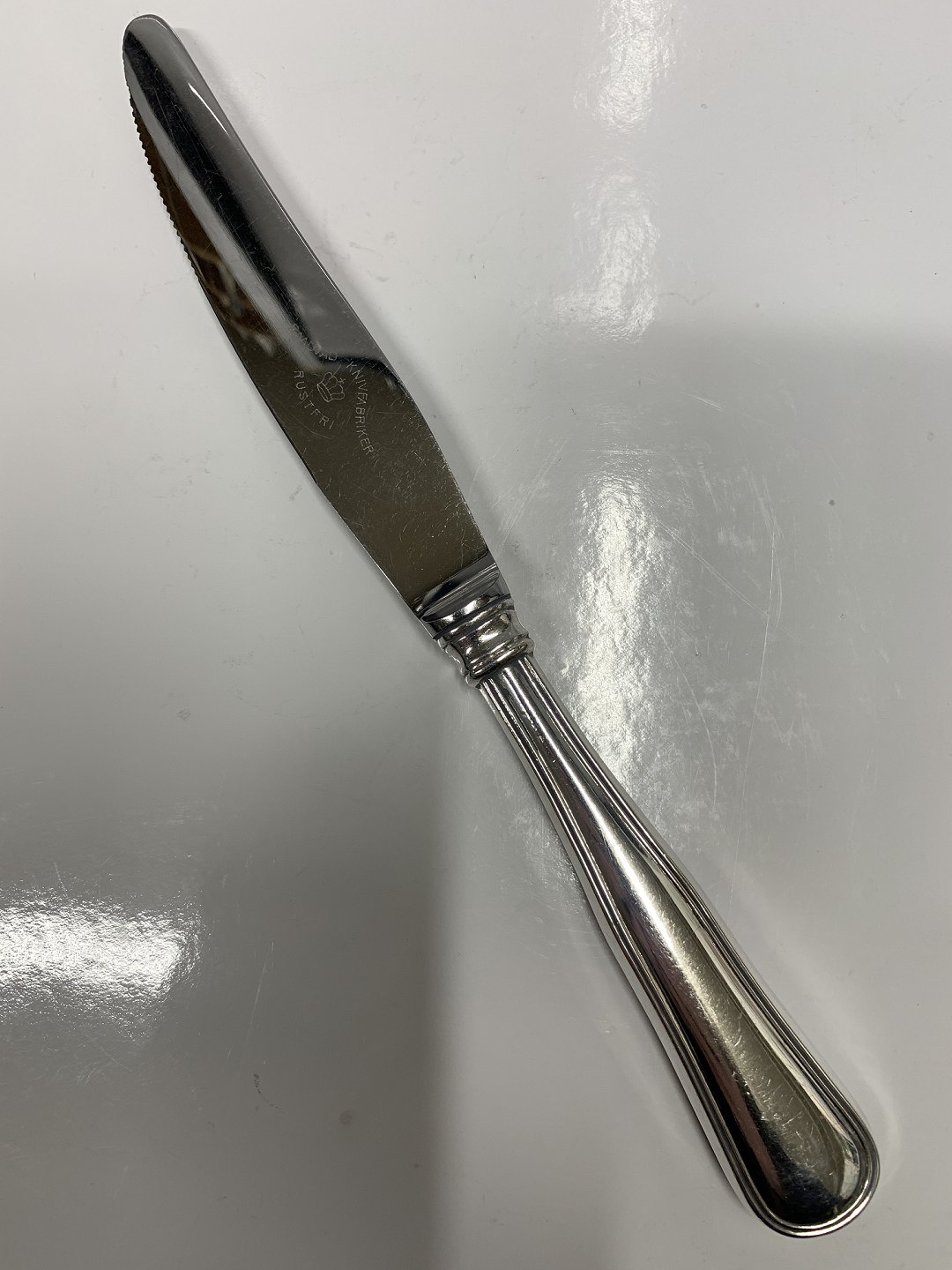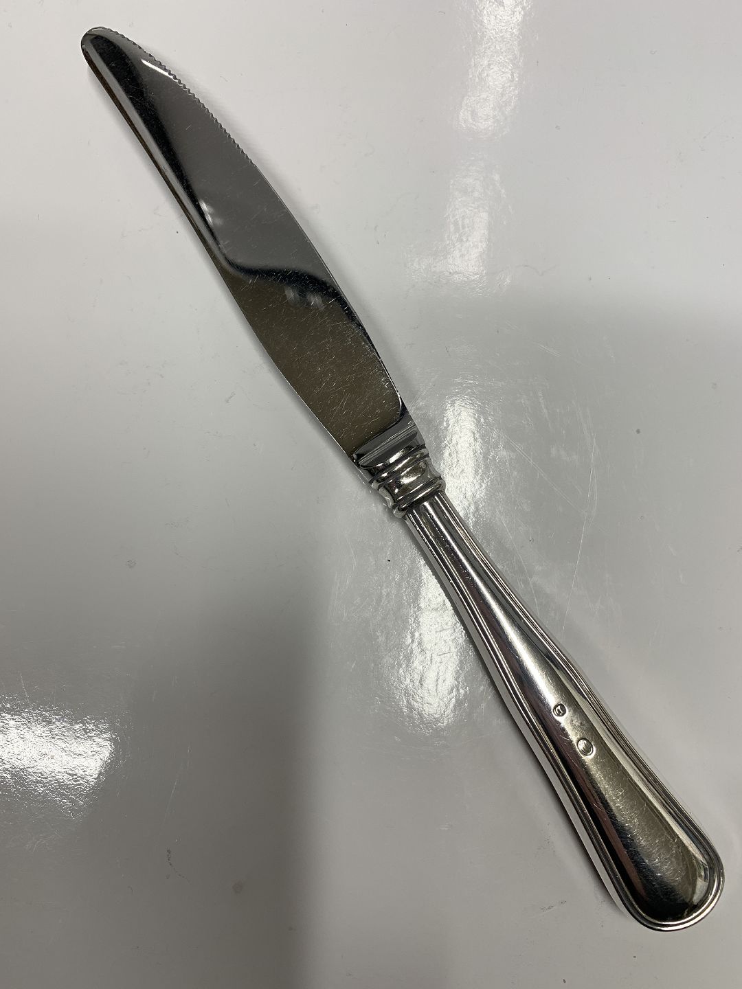 Dobbeltriflet Sølv, Middagskniv med/ savskærLængde 22,1 cm.