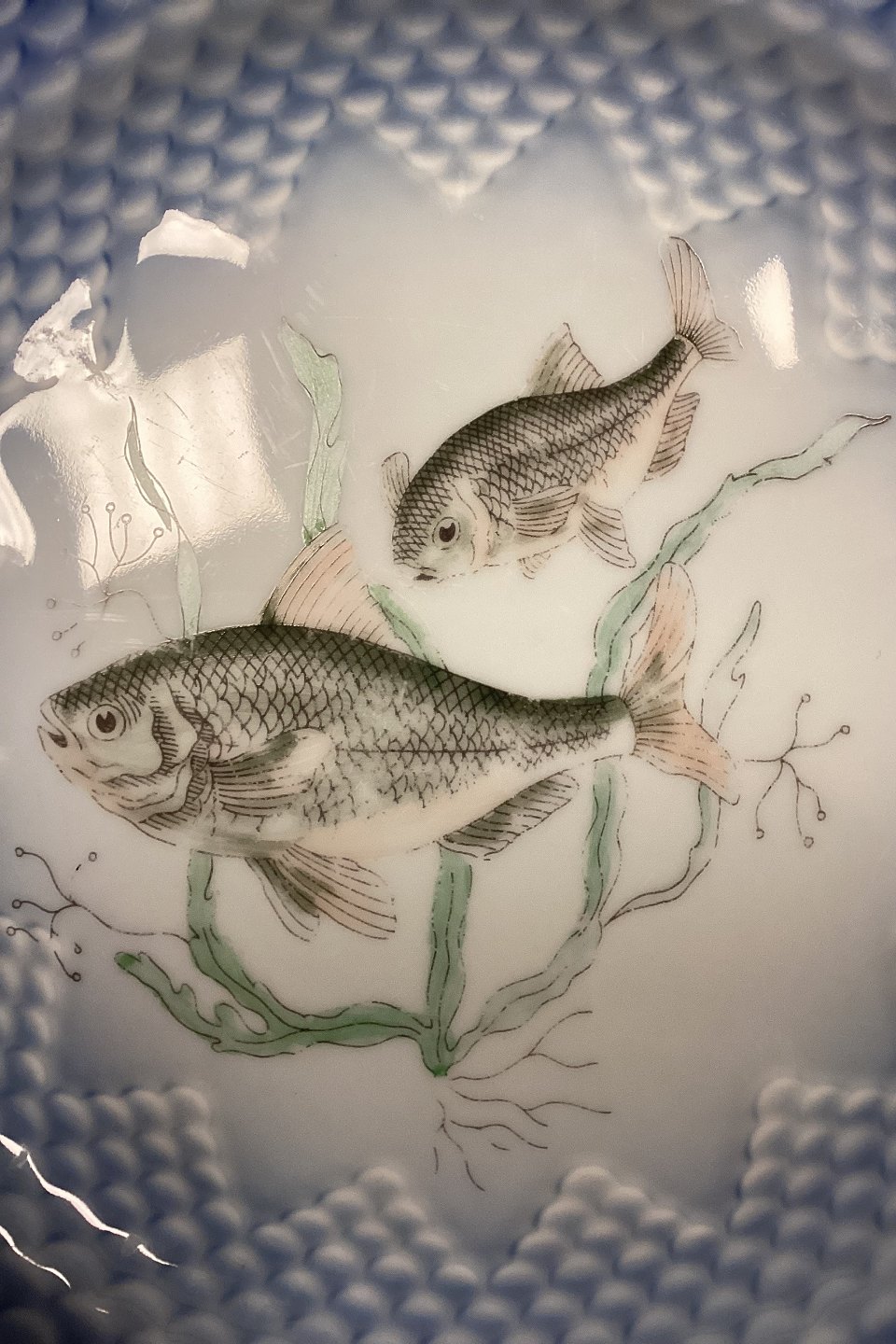 Bing og Grøndahl Blå Tone Fisketallerken Motiv 12 Brasen No. 716 - SKÅRET/SLIDT