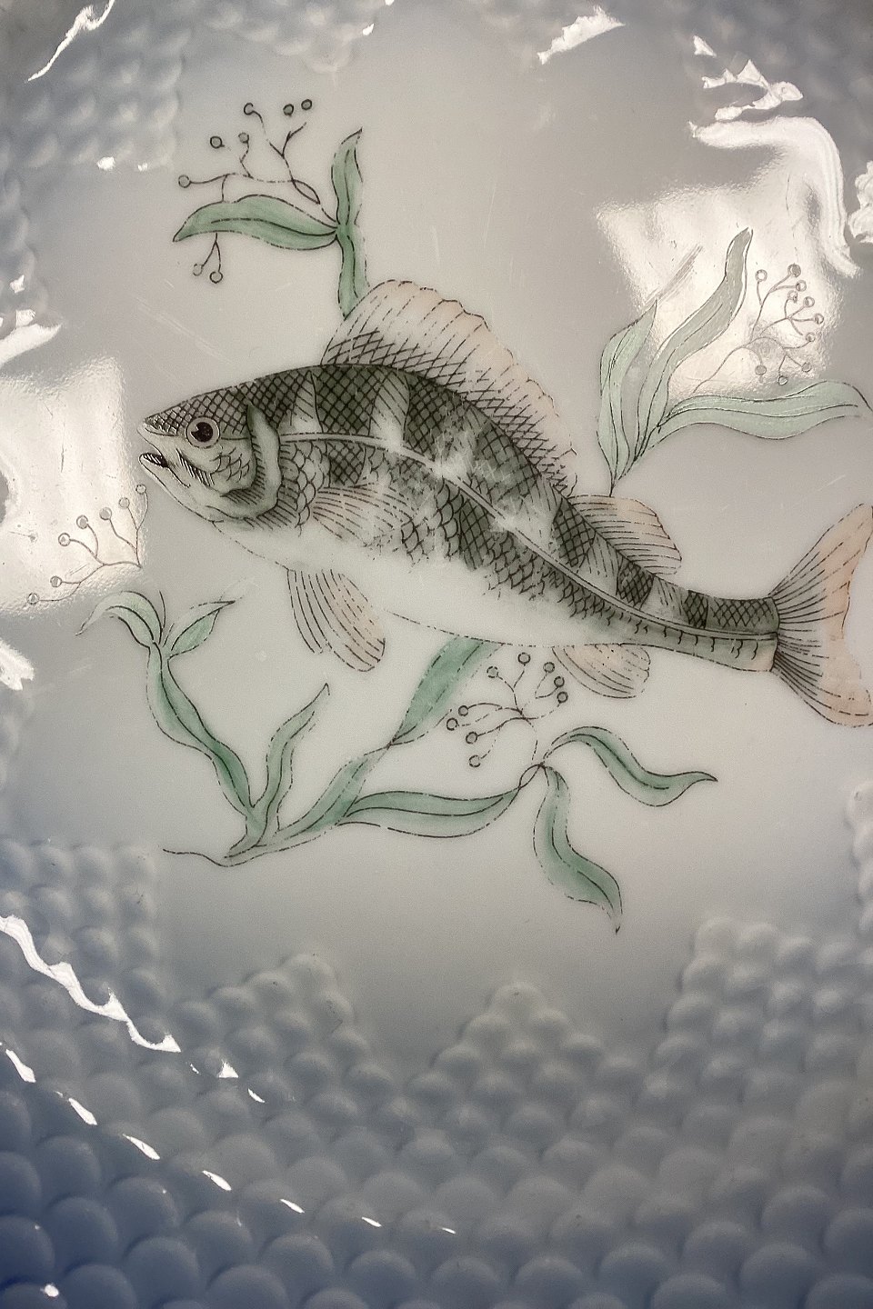 Bing og Grøndahl Blå Tone Fisketallerken Motiv 9 Aborre No. 716 - SKÅRET/SLIDT