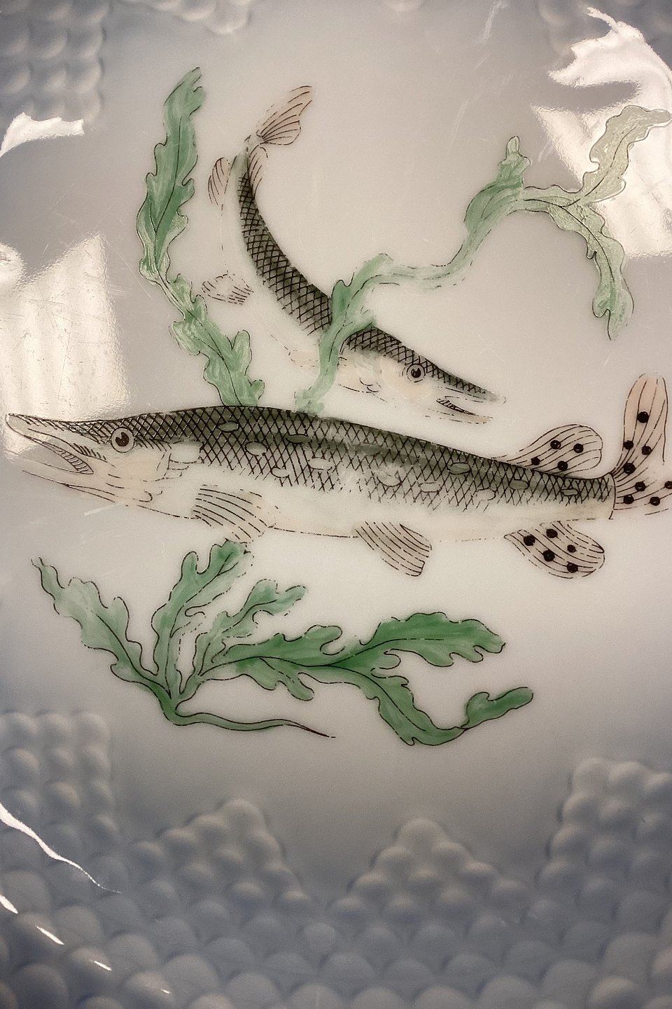 Bing og Grøndahl Blå Tone Fisketallerken Motiv 4 Gedde No. 716 - SKÅRET/SLIDT