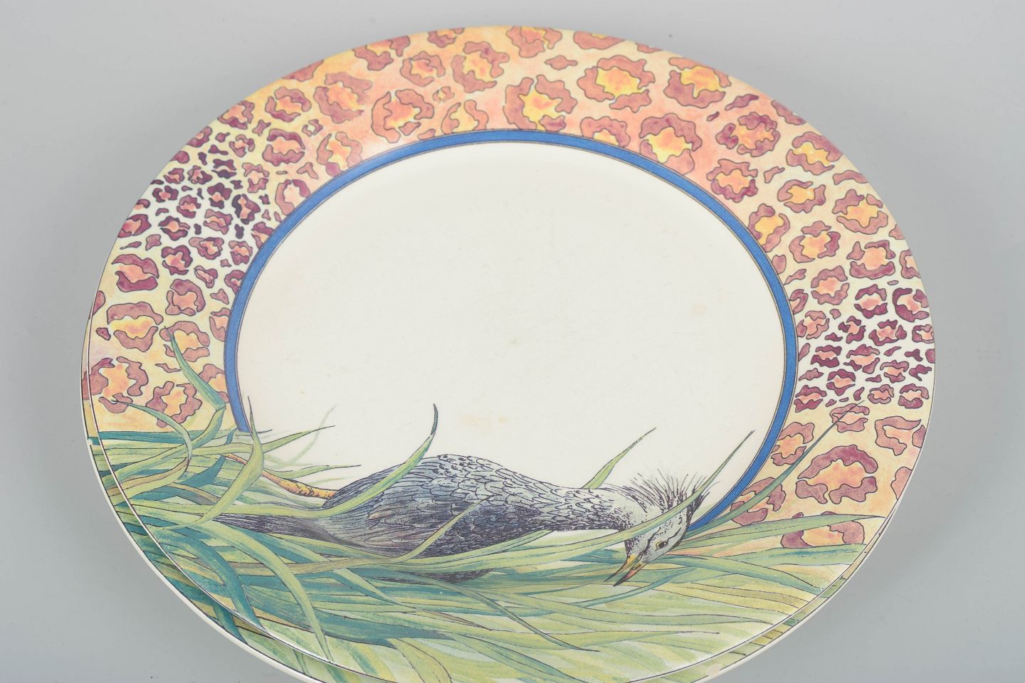 Tre dekorative fajancetallerkener fra Gien i det karakteristiske “Savane”-mønster med farverig bort og naturalistisk motiv. Et smukt, velbevaret sæt.