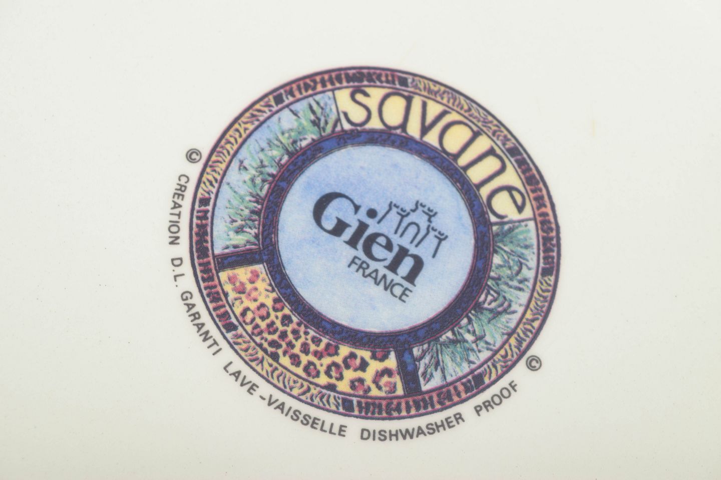 Gien, grundlagt i 1821, er kendt for sine kunstnerisk dekorerede fajanceserier, ofte med figurative og naturbaserede motiver. “Savane”-serien fra 1980’erne repræsenterer fabrikkens livlige udtryk og er i dag efterspurgt blandt samlere af fransk dekorativ keramik.