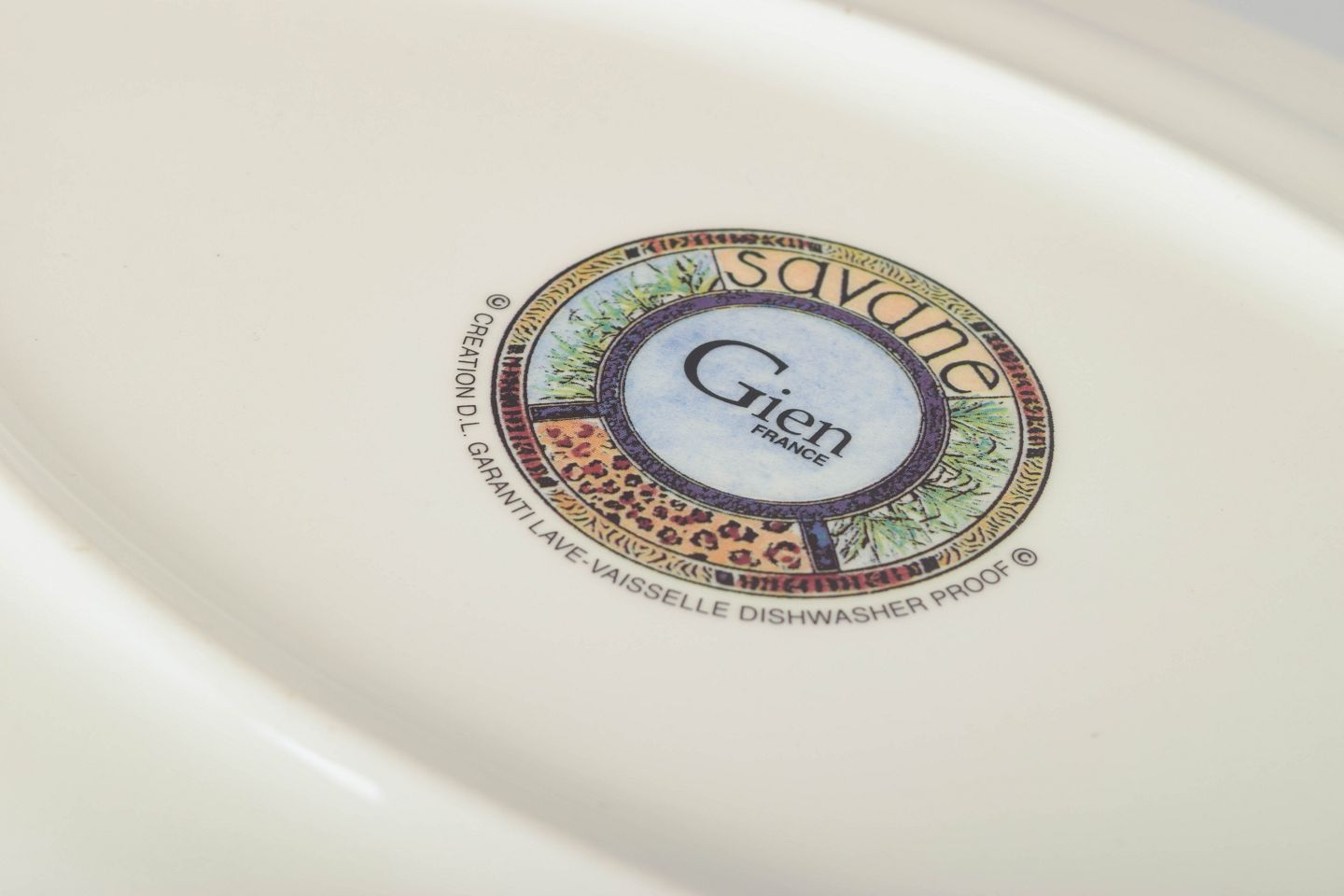 Gien, grundlagt i 1821, er internationalt anerkendt for sin dekorative fajance med kunstneriske og ofte håndmalede motiver. I 1980’erne udviklede fabrikken en række farvestærke og figurative serier som “Savane”, der i dag er eftertragtede blandt samlere af fransk keramik og fajance.