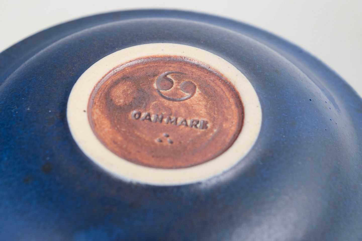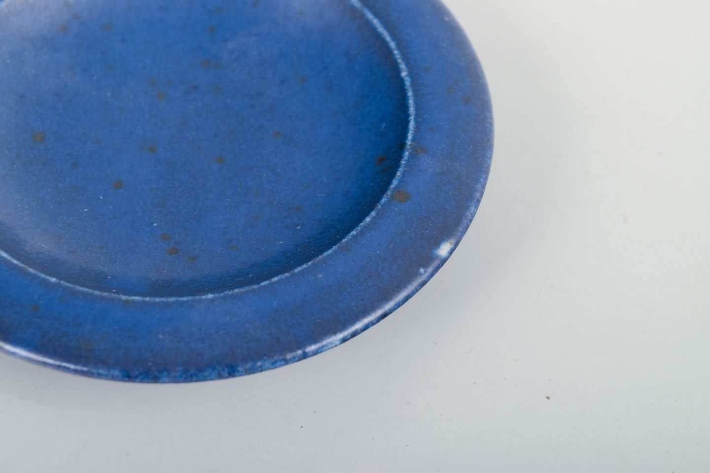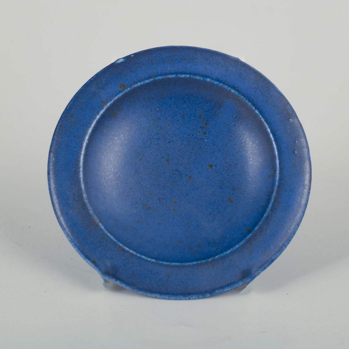 Lille stentøjsfad i karakteristisk Saxbo-glasur i dyb blå tone. En enkel, raffineret form med den klassiske matte overflade, som kendetegner Saxbos højbrændte stentøj.