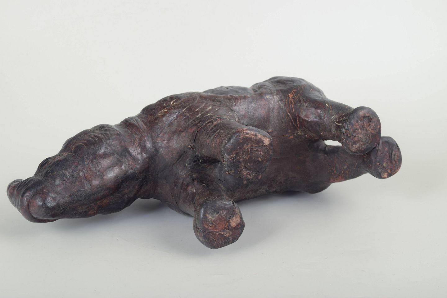Omersa for Liberty & Co., London – Stor lædernæsehornsfigur, midt 1900-talletHåndlavet figur af et næsehorn udført i formet og syet læder, muligvis solgt gennem Liberty & Co., London. Figuren har flot modellerede detaljer og en naturlig patina, der fremhæver det håndværksmæssige udtryk.