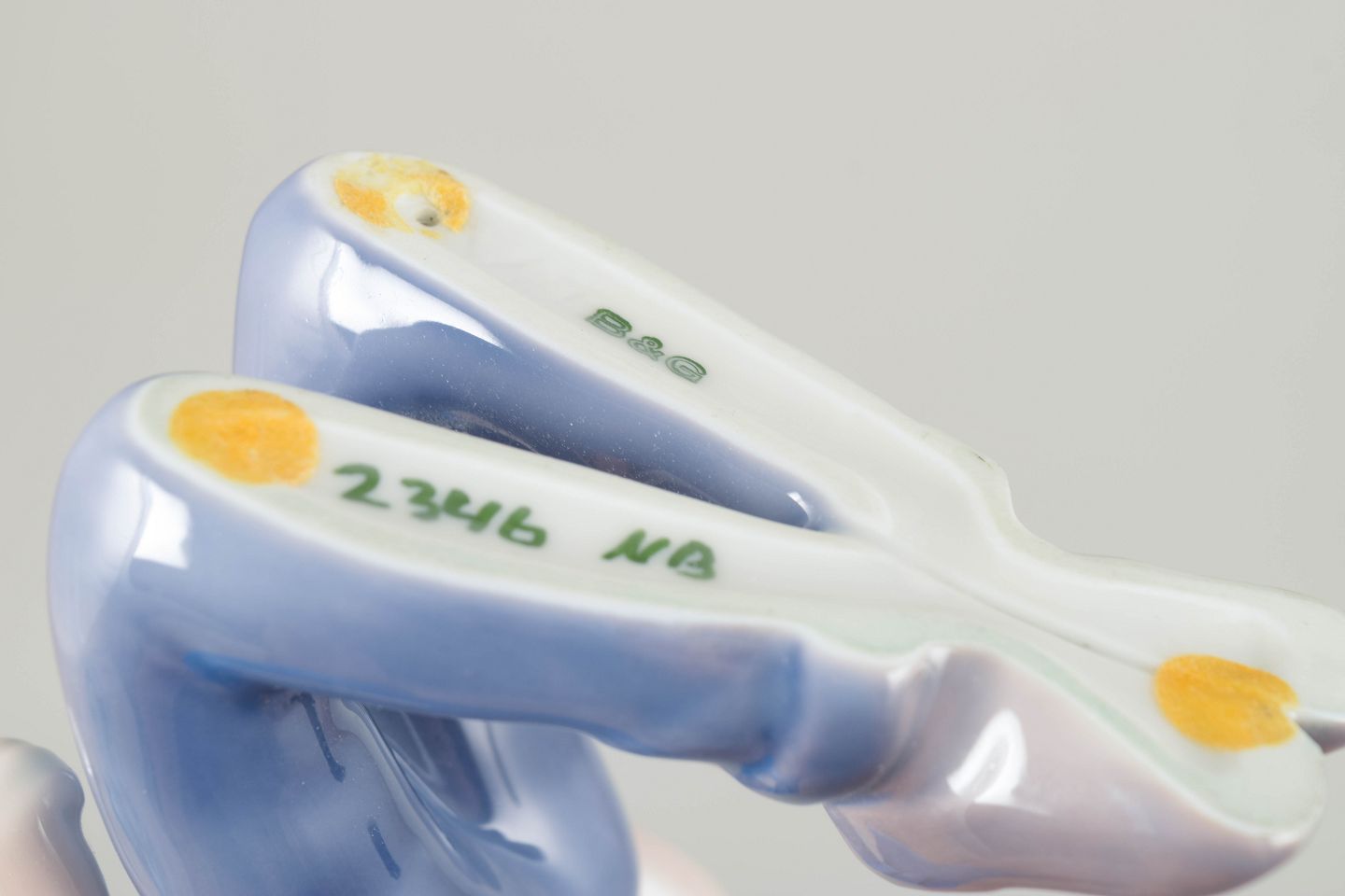 Bing & Grøndahl, grundlagt i 1853 i København, blev internationalt anerkendt for sine porcelænsfigurer, hvor naturalistiske motiver og fint modellerede detaljer kendetegner produktionen. I 1960/70’erne udviklede fabrikken en række populære figurserier, ofte præget af blide farvepaletter og et poetisk formsprog.