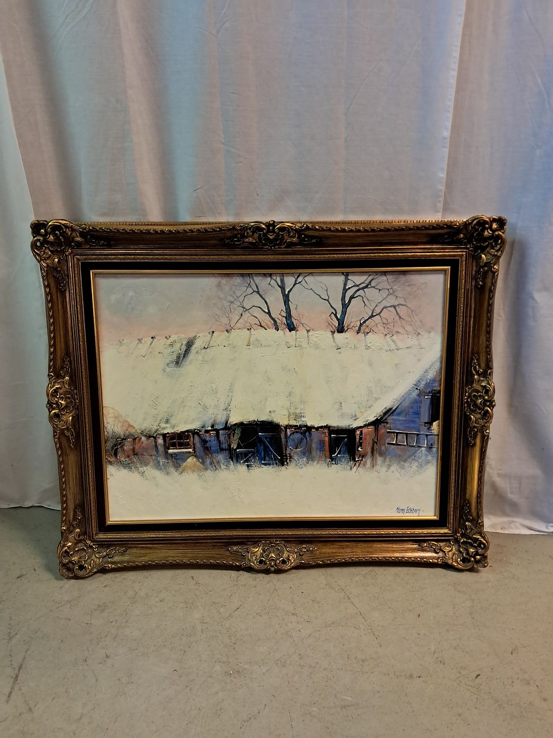 Maleri i guldmalet ramme, fra 1950erne.Højde 82cm Bredde 101cm