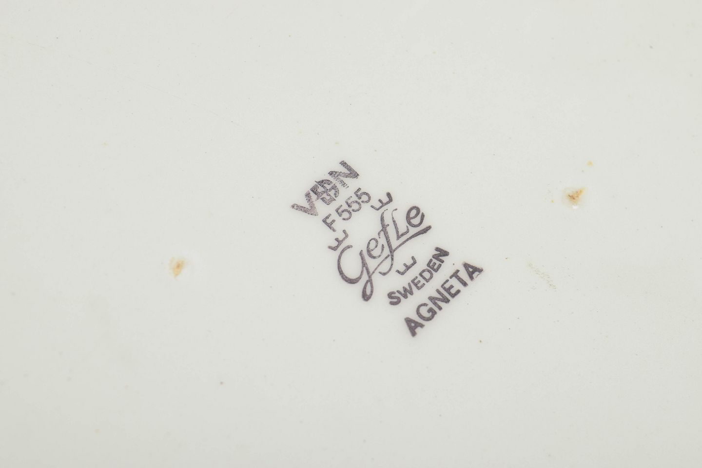 Gefle (Gefle Porslinsfabrik), grundlagt i 1910 og senere indlemmet i Upsala Ekeby-koncernen, var kendt for sine dekorative og farverige stel i midten af det 20. århundrede. Serien Agneta er et godt eksempel på fabrikkens 70’er-æstetik, hvor grafiske blomsterdekorer og enkle former skabte et varmt og tidstypisk udtryk.
