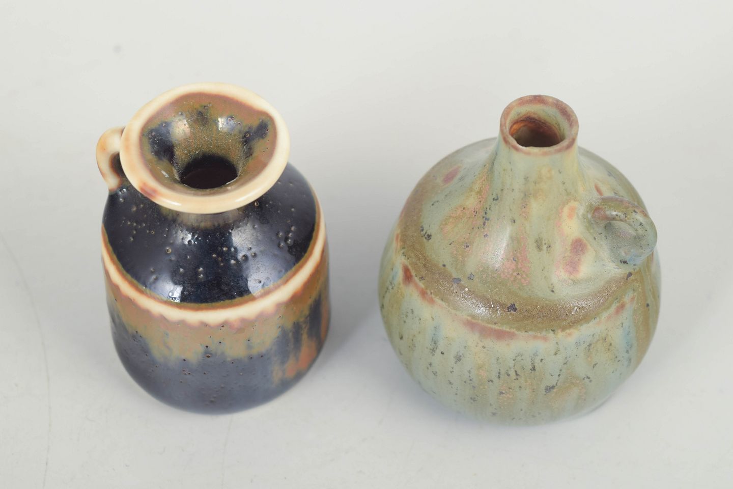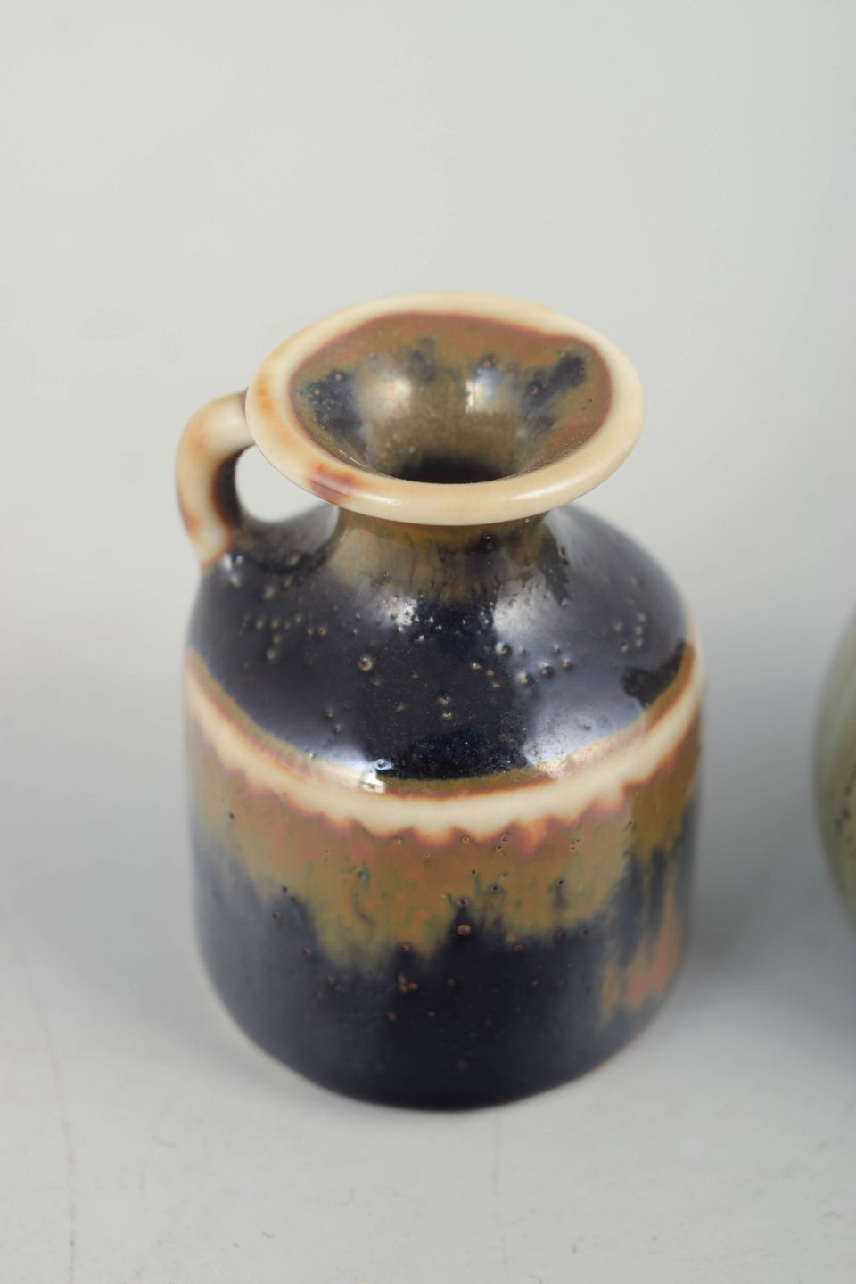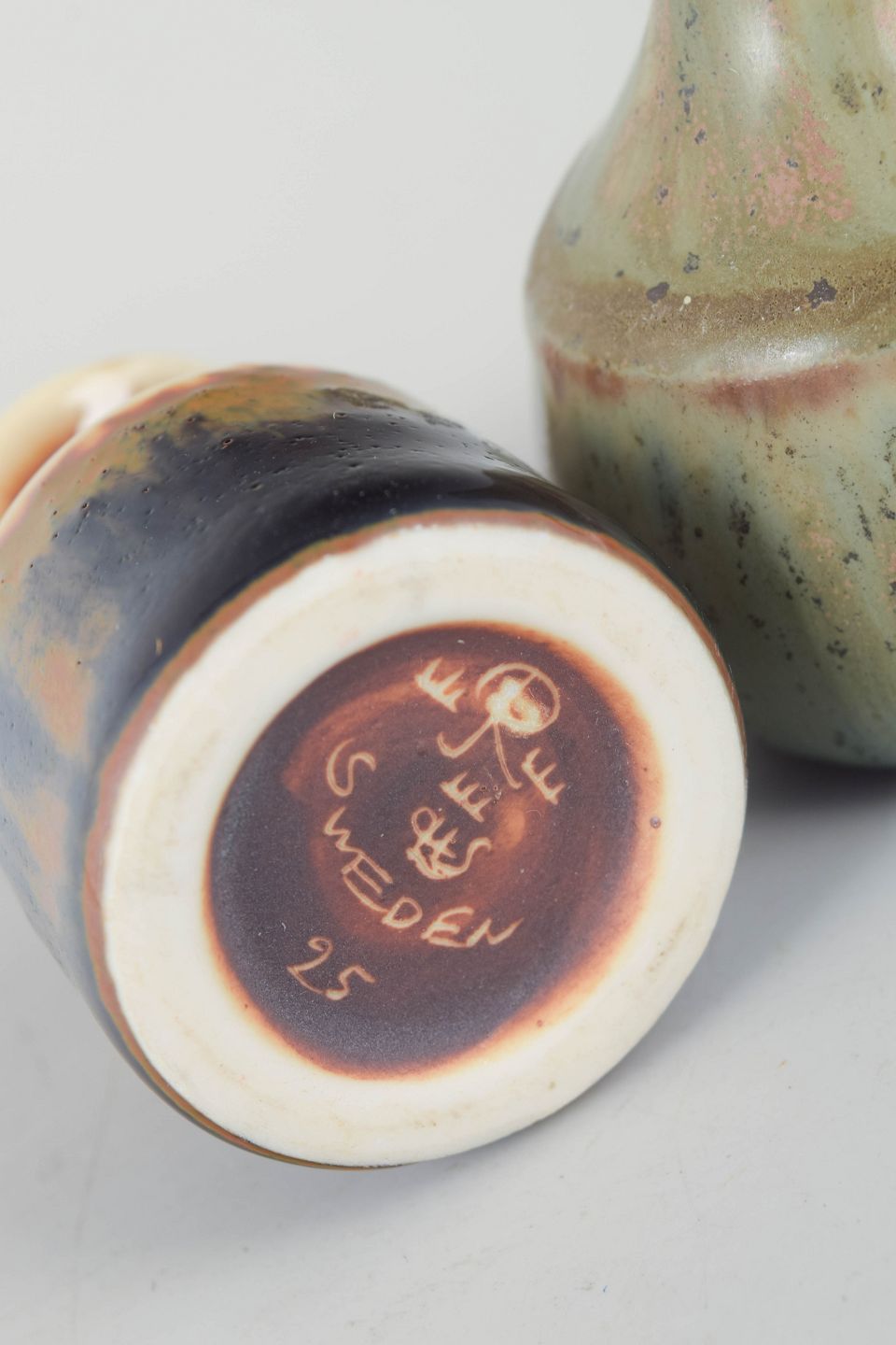 To små håndglaserede miniaturevaser i stentøj, hver med sin egen organiske form og Stålhane’s karakteristiske eksperimenterende glasurudtryk. Smukke, samler-venlige eksempler på hans arbejde i miniatureformat.