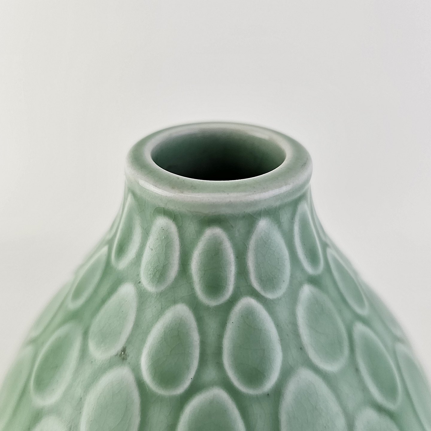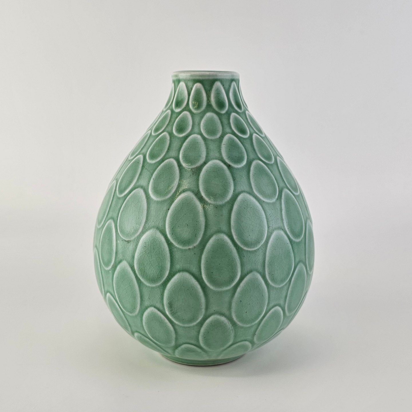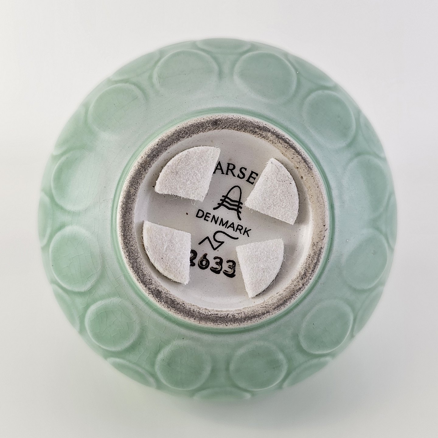 Vase i mintgrøn fajance med dråbemønsterNr. 2633