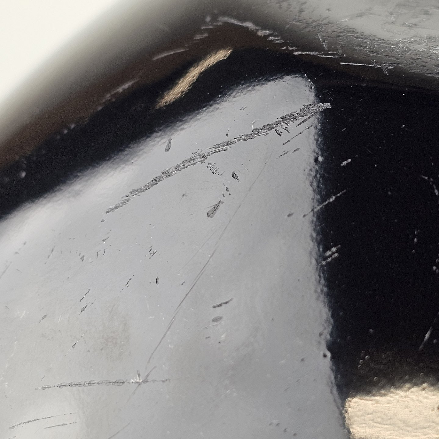Fremstår med diverse mærker og skrammer i overfladen
