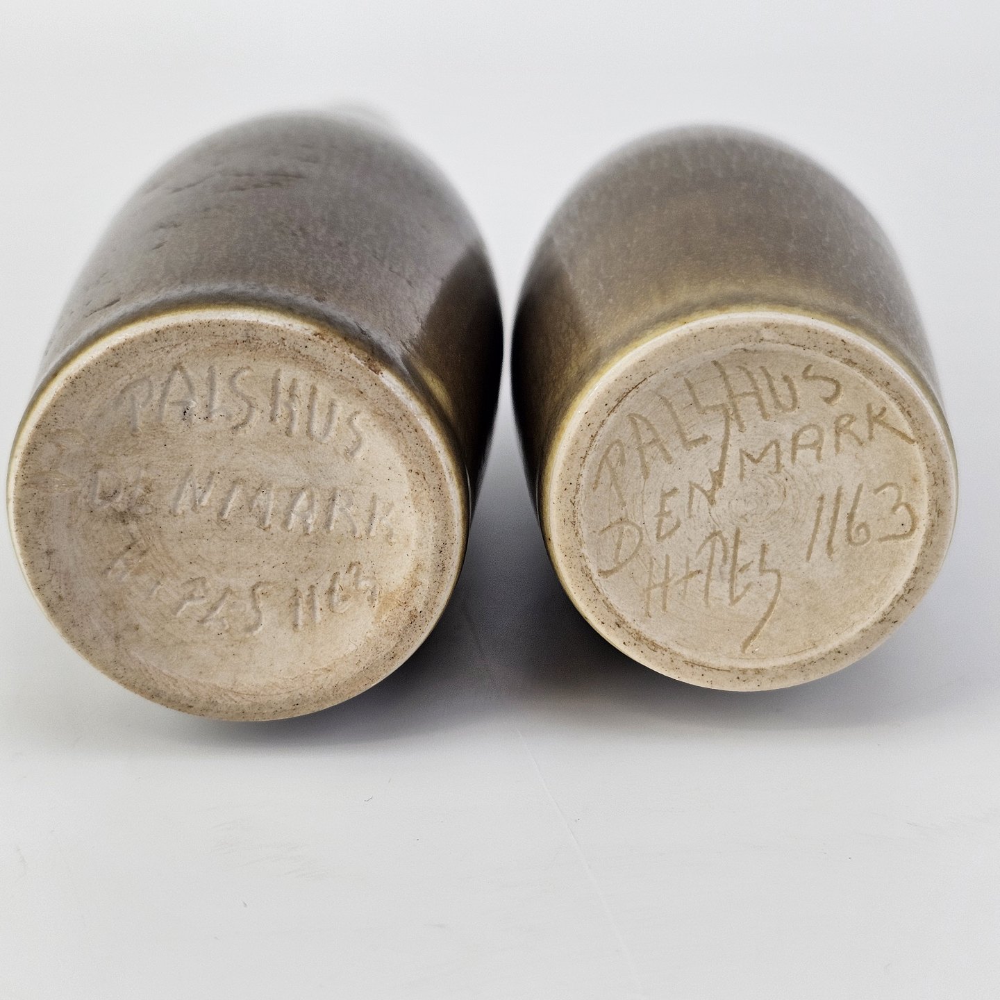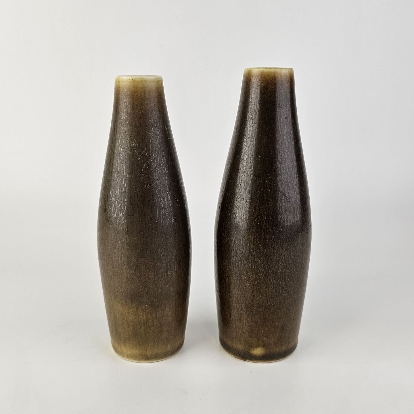 Sæt af to vaser i stentøj i harepelsglasur og med indsnævret halsProducent Palshus, Denmark