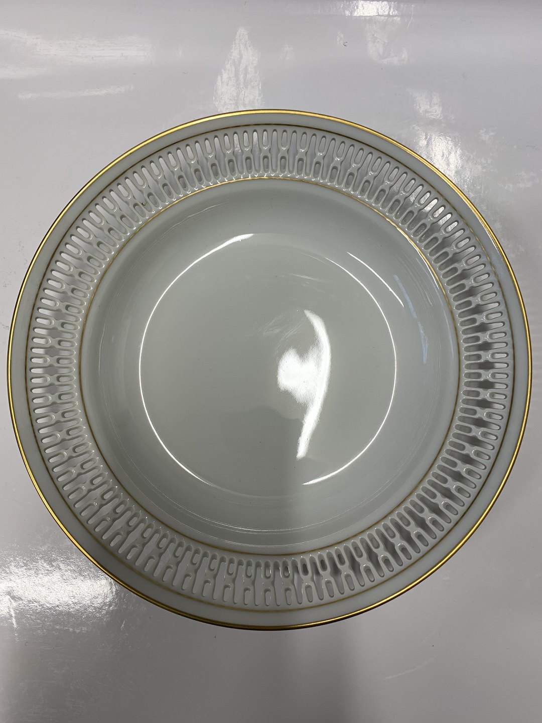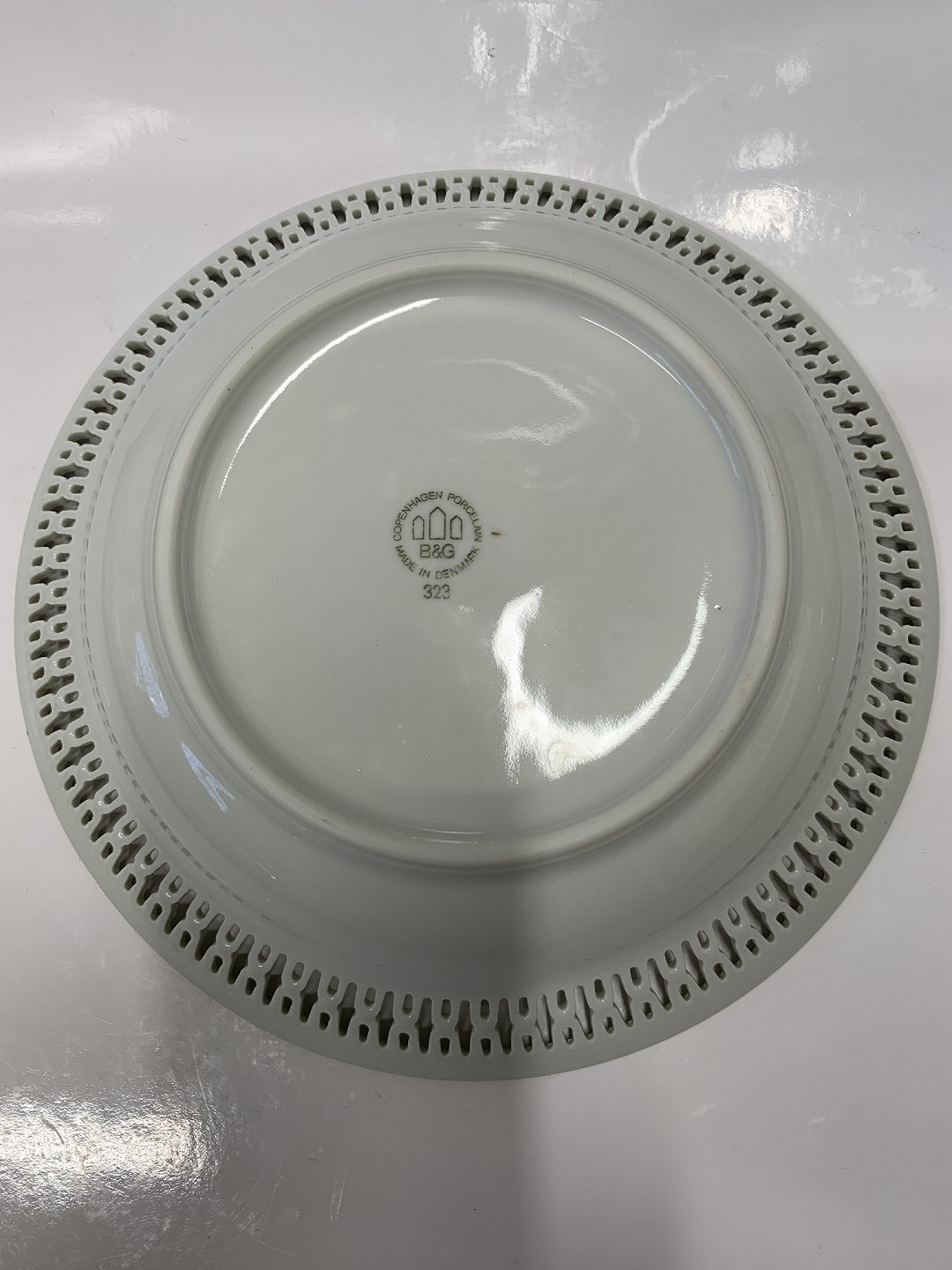 Bing & Grøndahl, Haga, Dybtallerken med guld og gennembrudt kant. Dek. Nr. 323