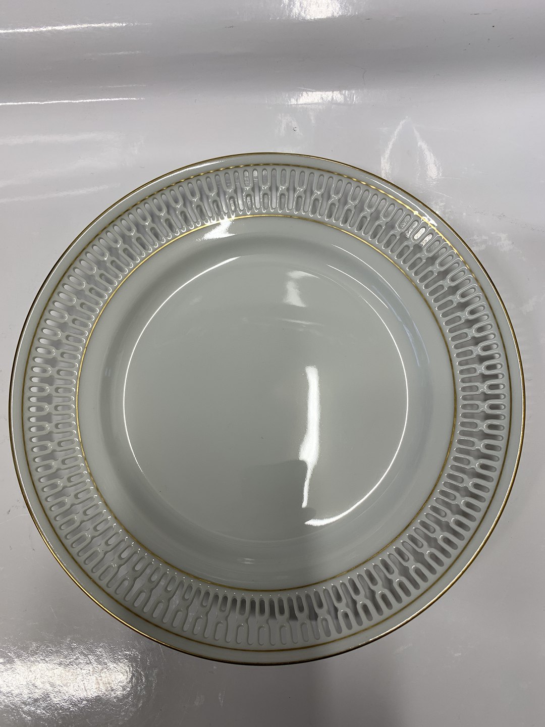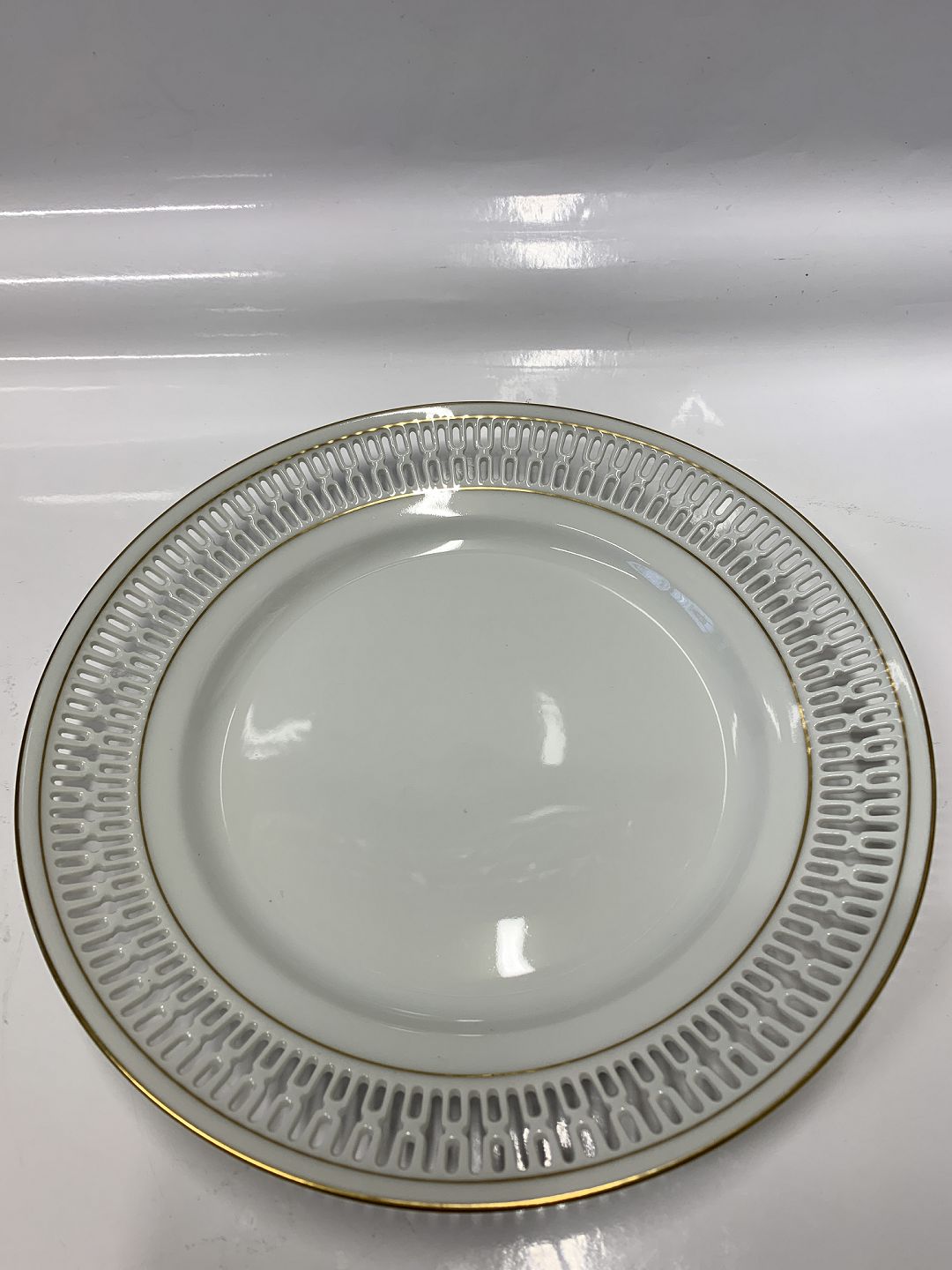 Bing & Grøndahl, Haga, Frokosttallerken med guld og gennembrudt kant. Dek. Nr. 326.