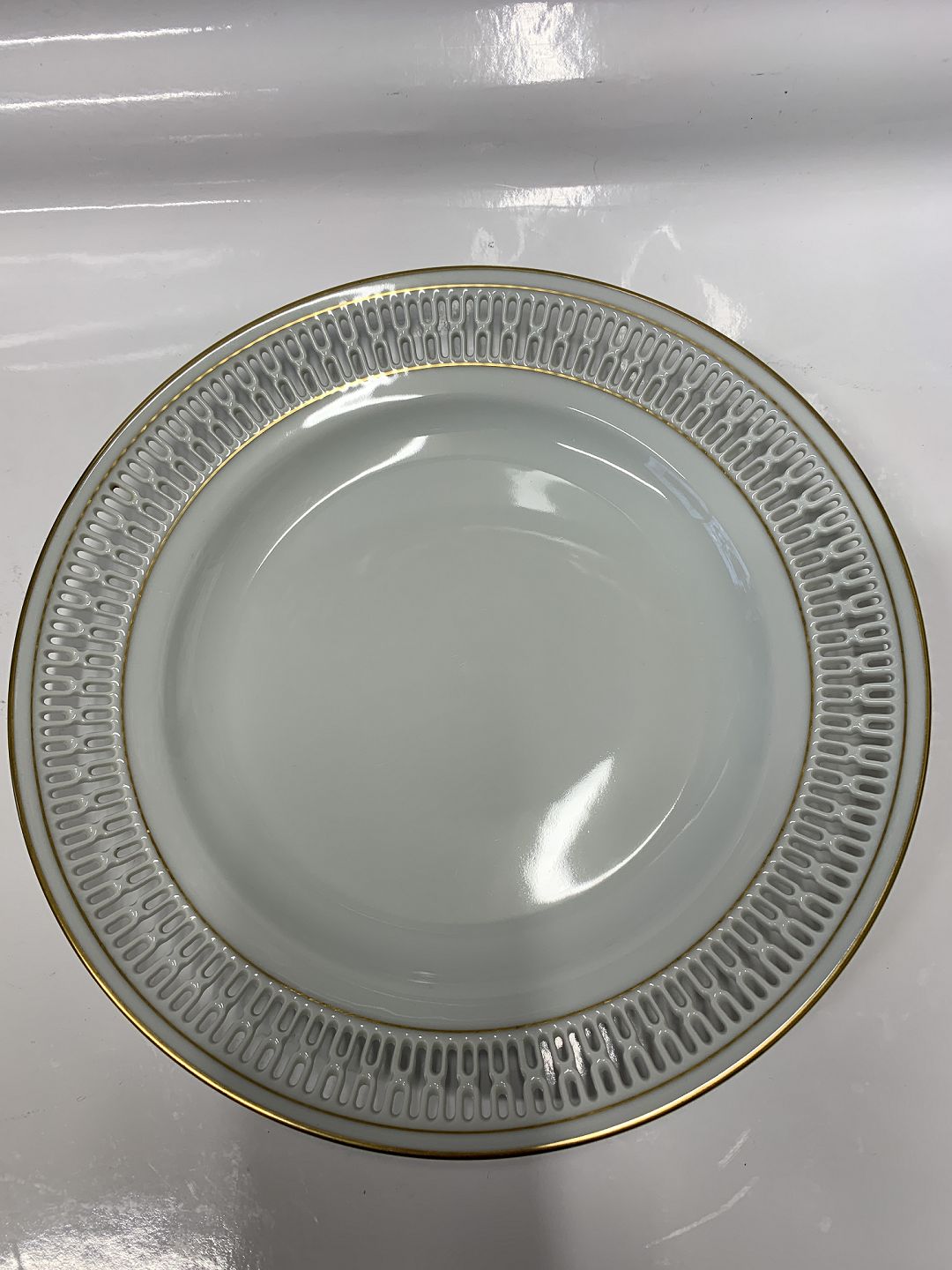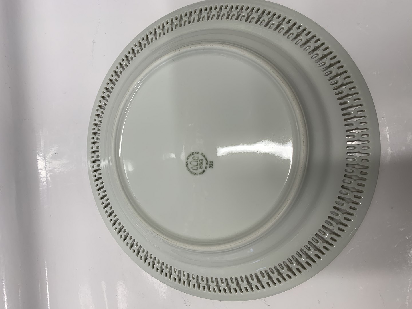 Bing & Grøndahl, Haga Middagstallerken med guld og gennembrudt kant. Dek. Nr. 325