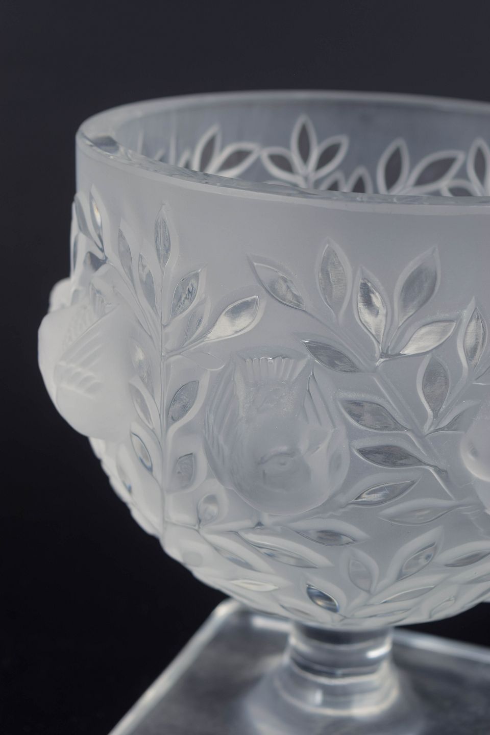 Lalique is renowned for its frosted crystal artworks featuring natural motifs – often leaves, flowers and fruit – executed in deep, sculptural reliefs. Production in the 1970s continued René Lalique’s artistic legacy with an emphasis on craftsmanship, elegance and refined detailing.
