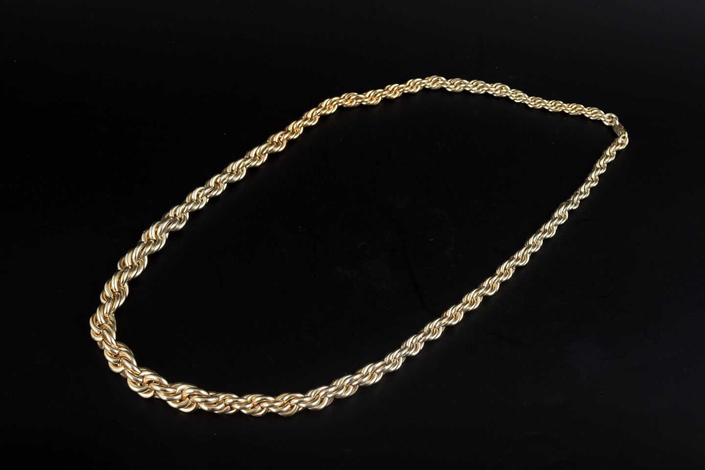 Elegant og kraftig snoet kæde i forgyldt metal, udført i Dior’s karakteristiske 1970’er-stil. Et markant, luksuriøst smykke med flot glød og tidstypisk udtryk. Længde ca. 85 cm.