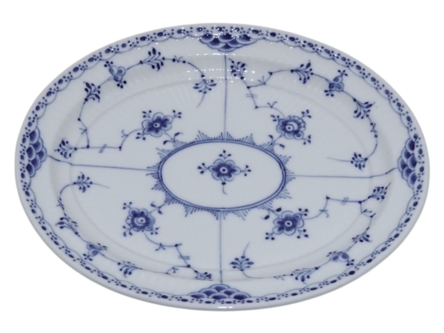 Royal Copenhagen Musselmalet Halvblonde, sættefad.Af fabriksmærket kan det udledes, at denne er produceret i 1938.