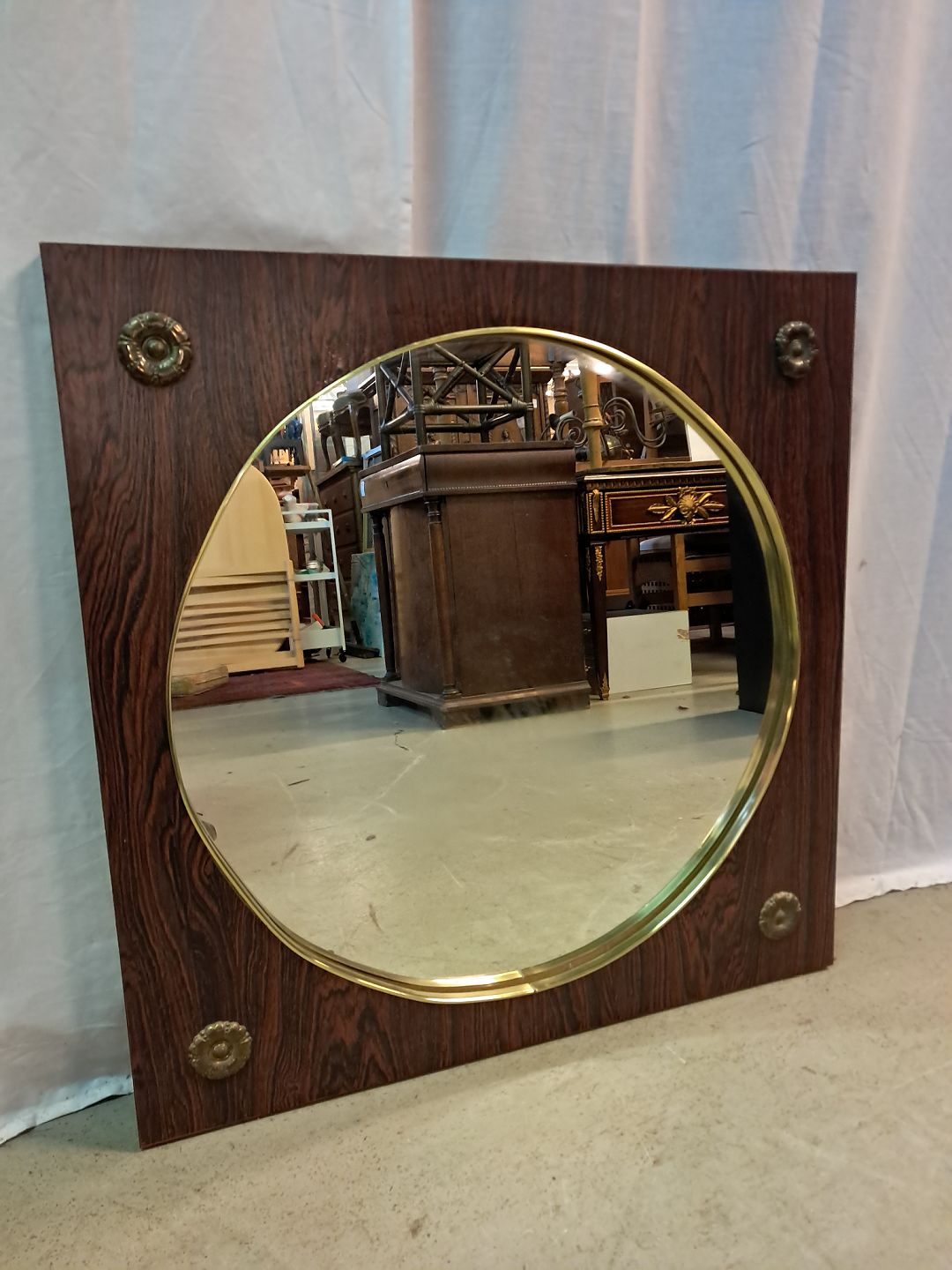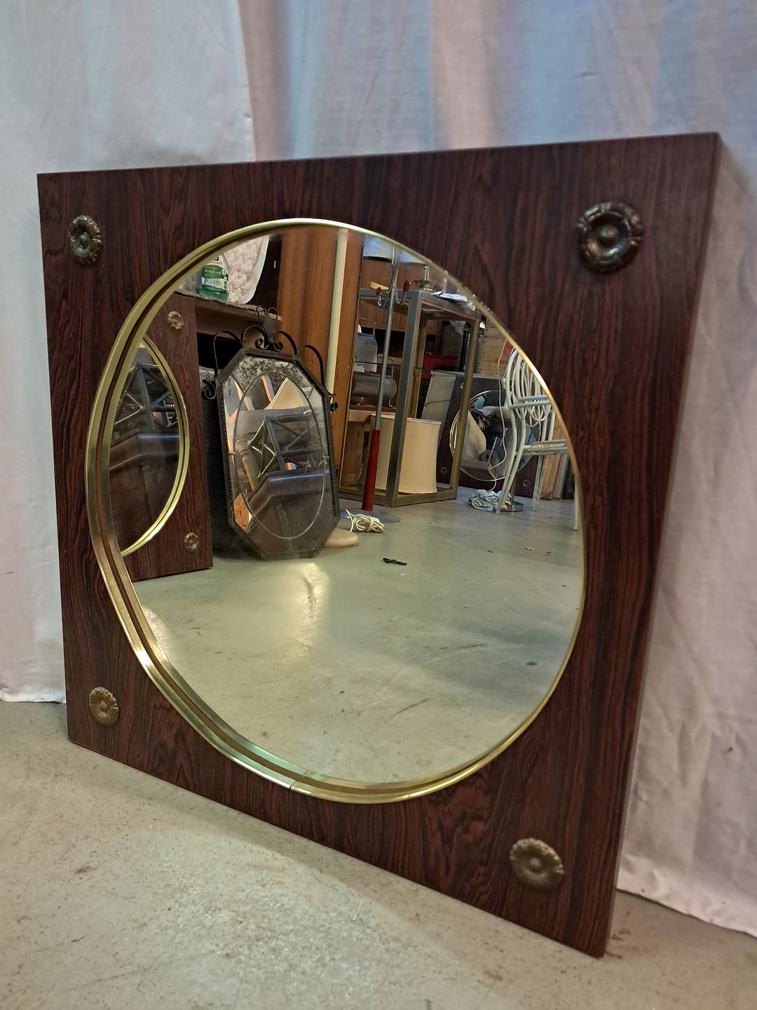 Spejl i fineret palisander, fra 1960erne.Det har brugsspor.