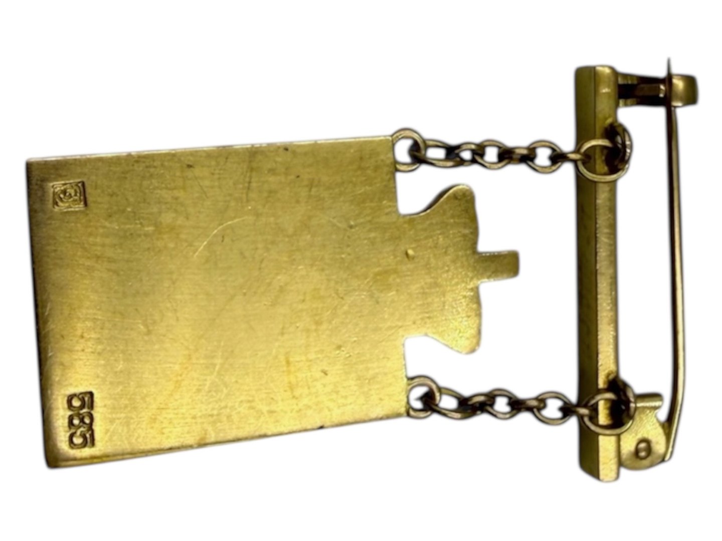 Georg Jensen 14 karat guld broche, Kongemærke i guld med bjælke 1870-1945.Designet af Arno Malinowski.