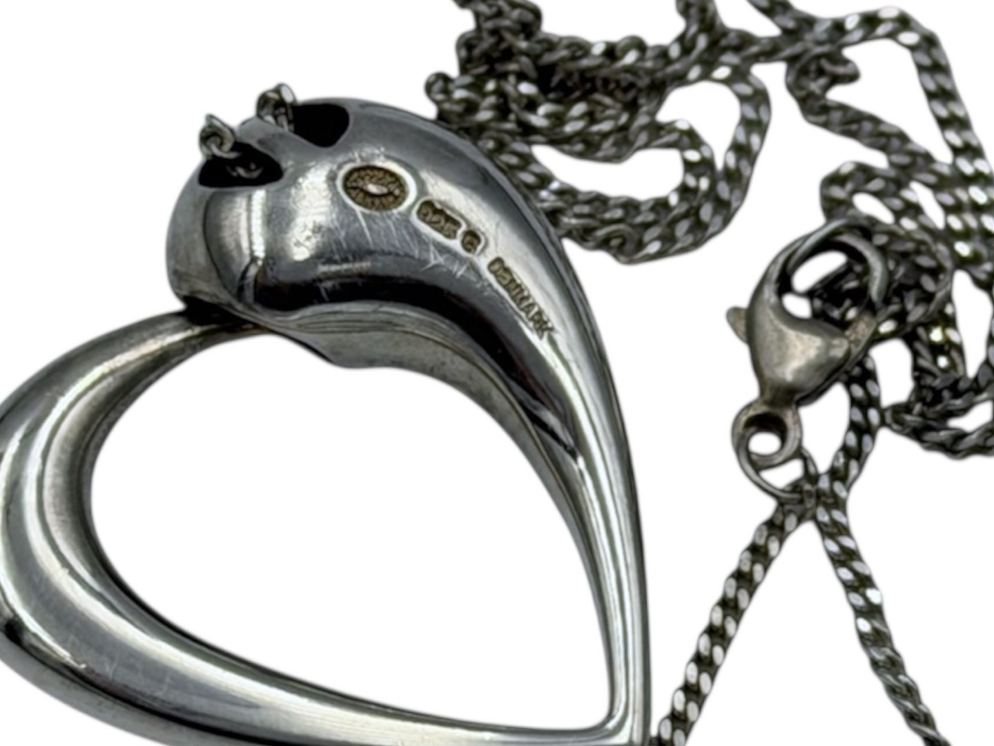 Georg Jensen sterling sølv, kraftigt hjerte vedhæng med halskæde.Denne er produceret efter 1945.