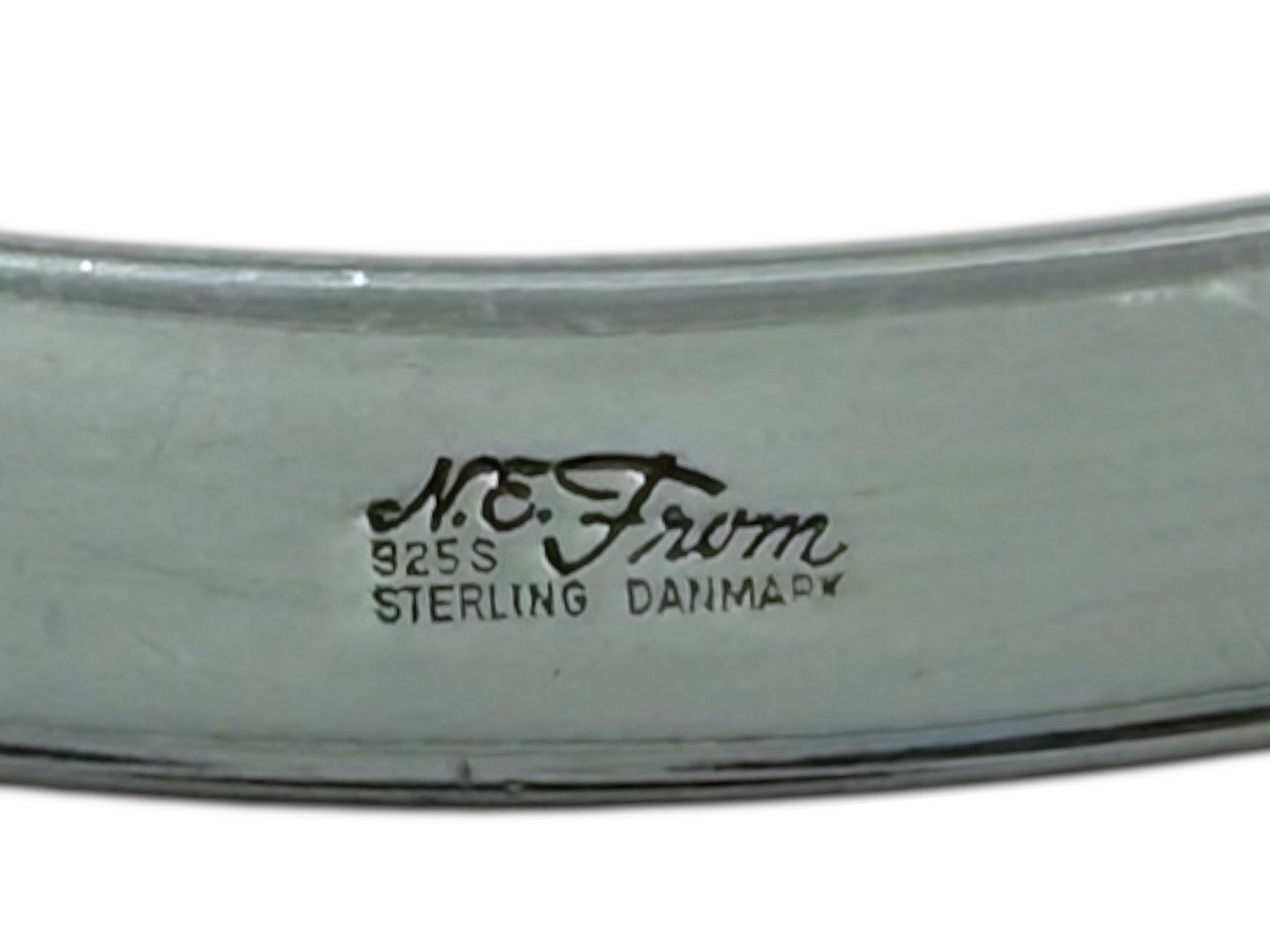 Niels Erik From sterlingsølv, moderne halsring.Stemplet "N.E. FROM 925S STERLING DENMARK". N.E. From var sølvsmed i Randers og Nakskov fra 1944 og efter hans død i 1986 fortsatte selskabet med at lave smykker frem til 2009. Smykker fra N.E. From er kendt for deres høje kvalitet. Dette er fra ca. 1950 til 1960.