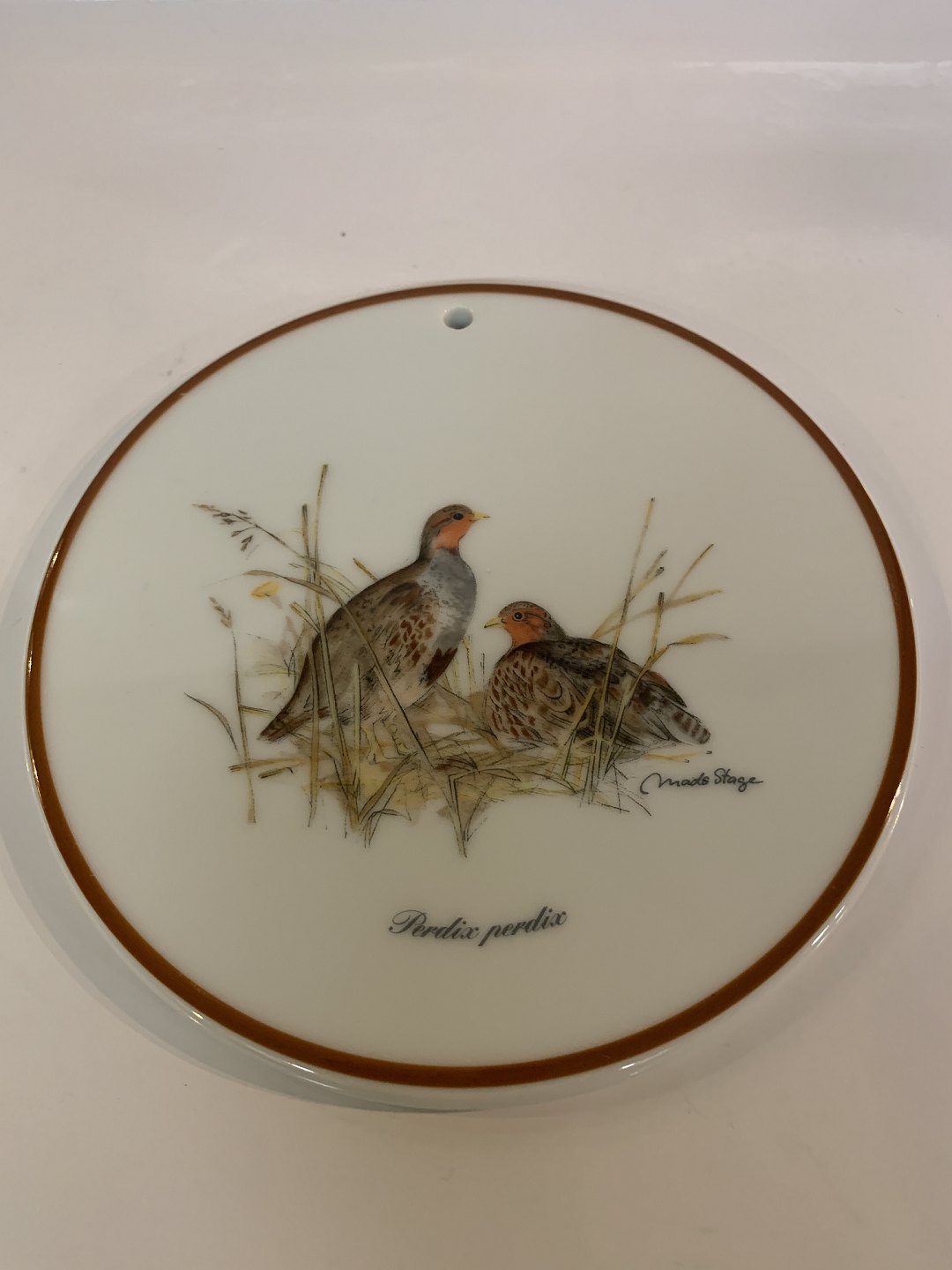 Jagtstellet Mads Stage Smørebrik / Platte, (Perdix perdix) Agerhøne Diameter 16 cm.
