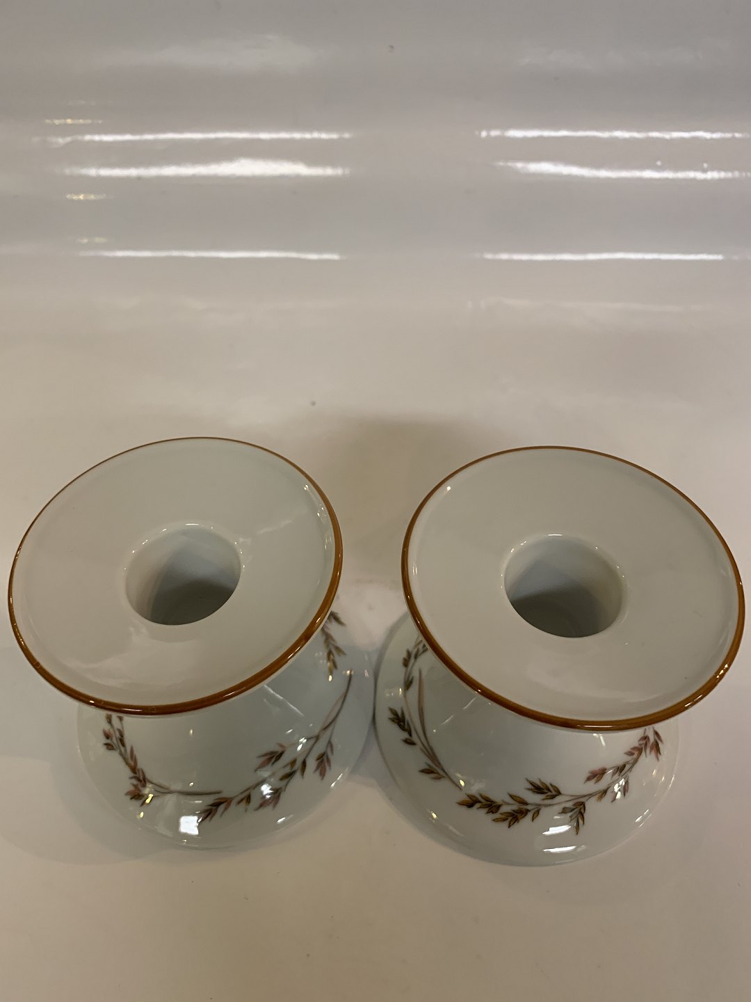 Mads Stage jagtstellet Lysestager med bladranke 1 par.Diameter Bund 7,5 Top 6,5 cm.
