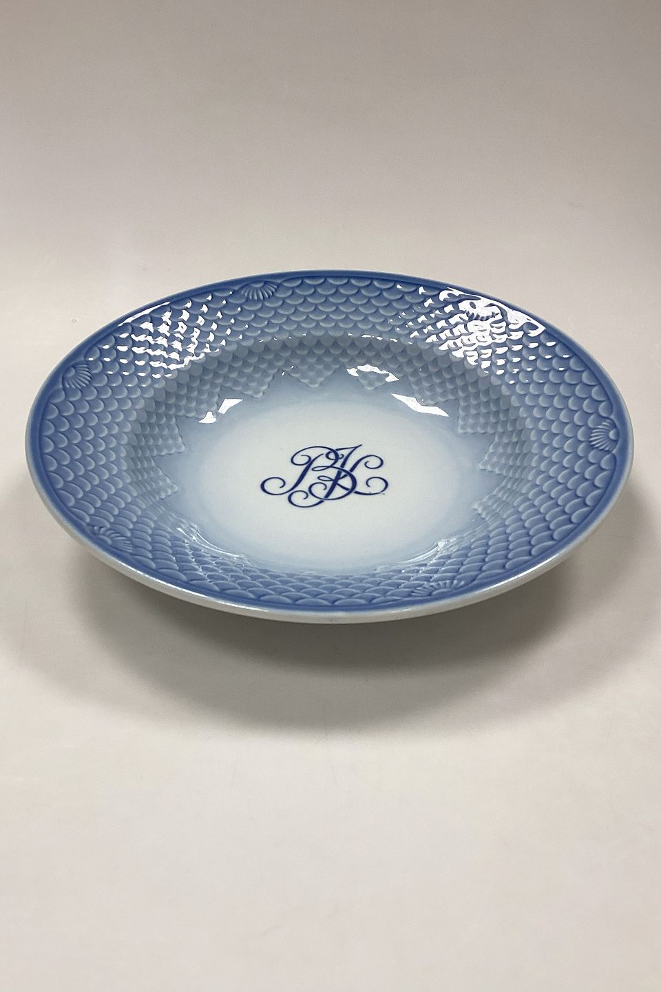 Bing og Grøndahl Blå Tone Hotel med Logo Stor Dyb Tallerken No. 714/1008Logo fra Brandrupdam Kro (BK)