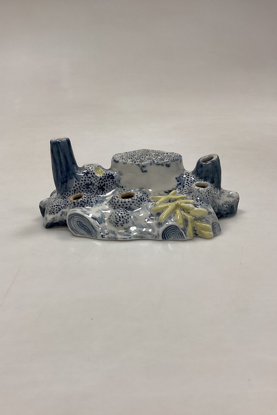 Royal Copenhagen Thorkild Olsen Skulptur/Vase No. 4731. Fantasimotiv med undervandsplanter i gul, hvid og blå. Måler 15 cm x 10 cm x 6 cm / 5,90 in. x 3,93 in. x 2,36 in.