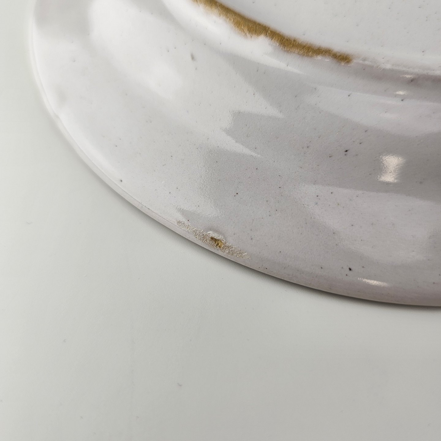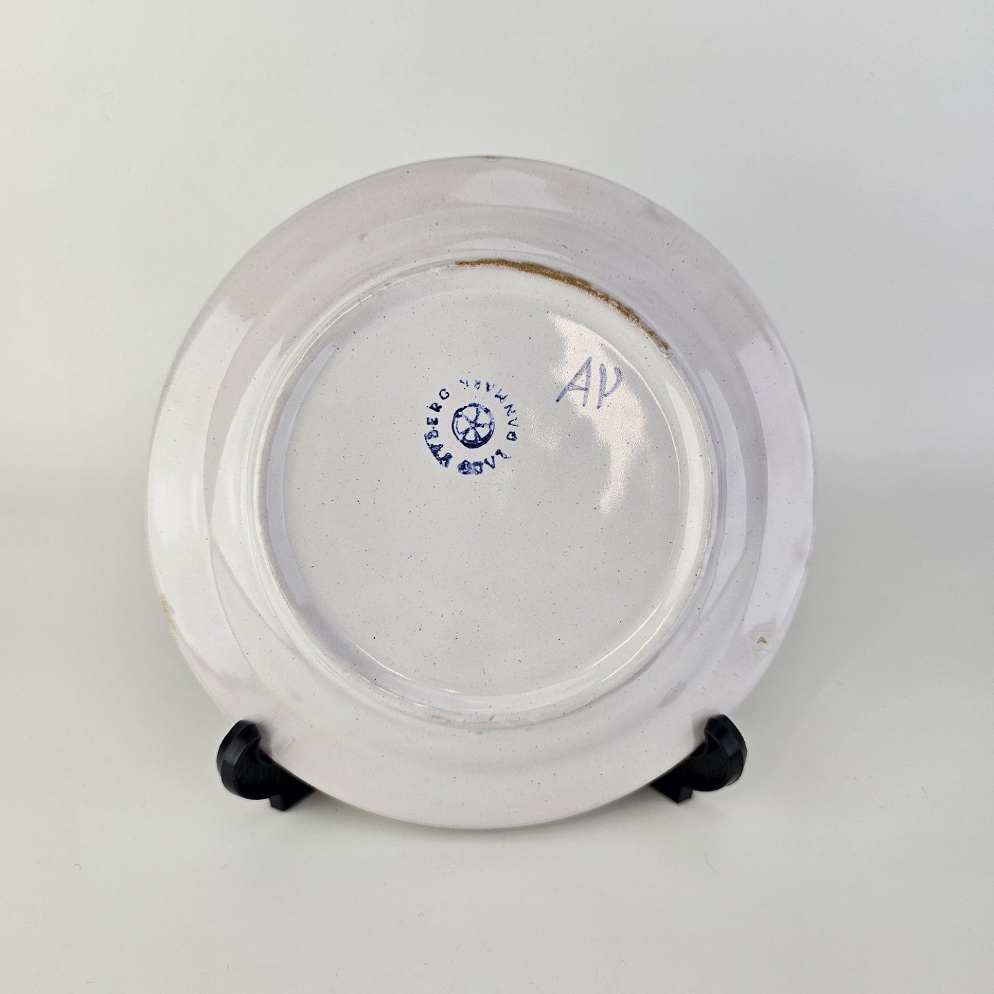 Desserttallerken i keramik med gule detaljer og blomsterdekorationProducent Lars Syberg keramik