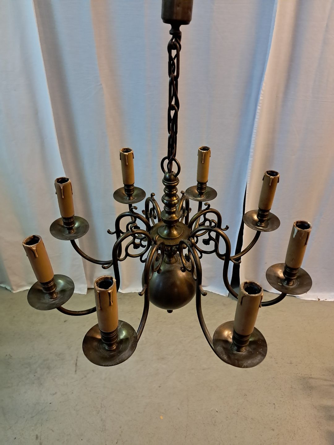 8-armet kirkekrone i bruneret messing, fra 1930erne.Den har brugsspor.