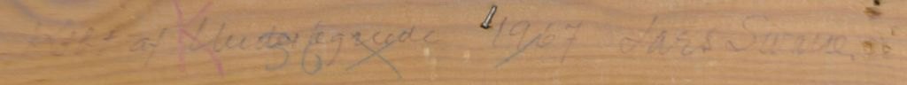 Rückseitig vermerkt: Das Werk stammt aus dem Jahr 1962. Es wurde 1967 von seinem Sohn Lars Swane erworben.