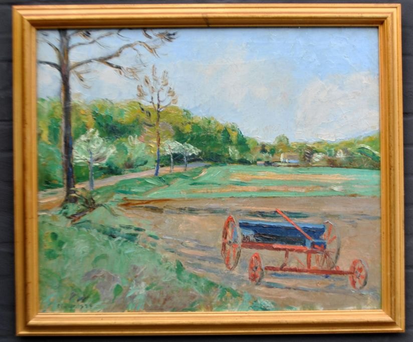 Naur, Albert (1889–1973) Dänemark: Eine Sämaschine auf einem Feld, 1929. Öl auf Leinwand. Signiert: Naur 1929. H: 64 cm. B: 77 cm.Gerahmt H: 73 cm. B: 85 cm.