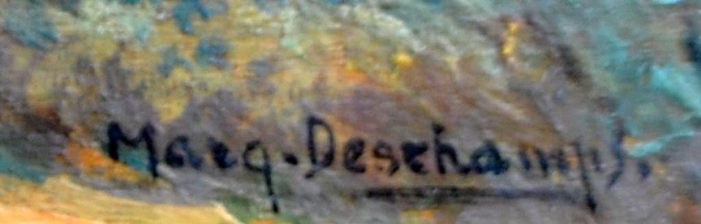 Deschamps, Margaret (19. Jahrhundert) Frankreich: Häuser am Meer. Öl auf Holz. Signiert. 9 x 21 cm.Gerahmt: 21,5 x 33,5 cm.