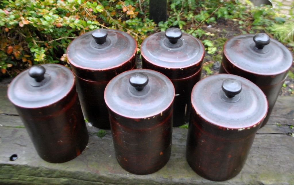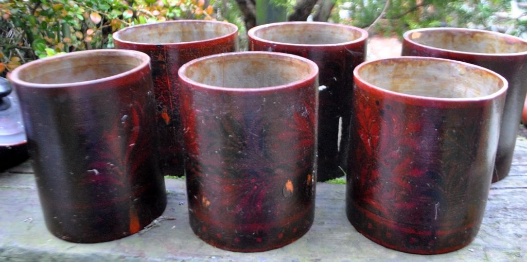 Sammlung russischer Holzkästchen aus dem 19. Jahrhundert. Gedrechseltes und ausgehöhltes Holz. Außen bemalt und lackiert. Innen silberfarben. Insgesamt 5 Stück. Hinweis: Nur als Set erhältlich!Bestellnummer: 28748
