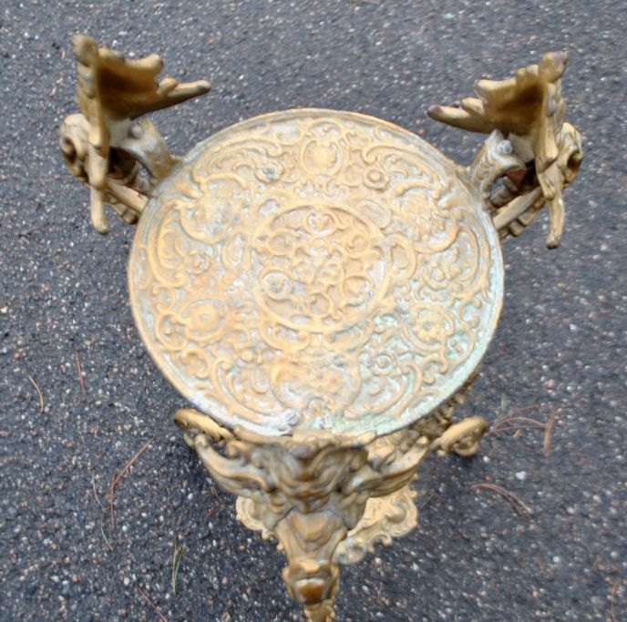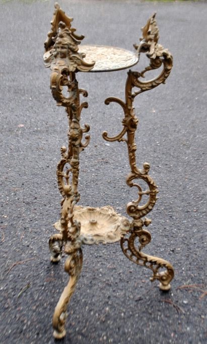 Eiserner Sockel, um 1870, Dänemark. Auf drei Beinen, verziert mit Engeln und Delfinen. Höhe: 75 cm.Bestellnummer: 28756