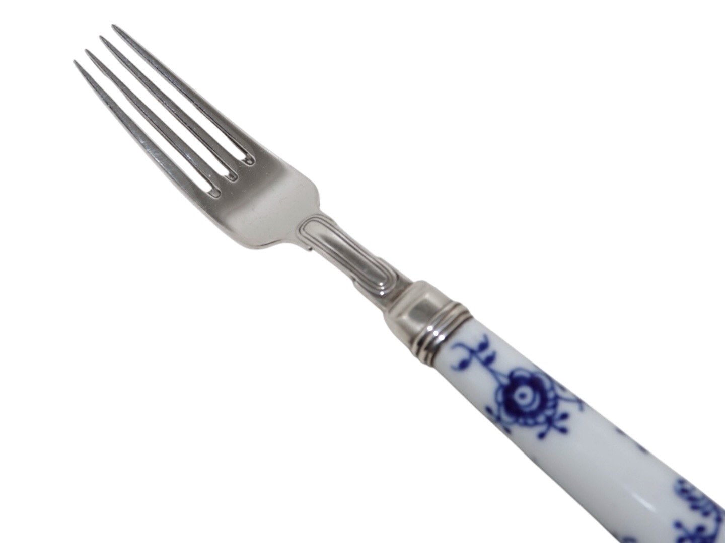 Royal Copenhagen Musselriflet Riflet, sjælden gaffel monteret med Anton Michelsen sterlingsølv.Længde 16,4 cm.