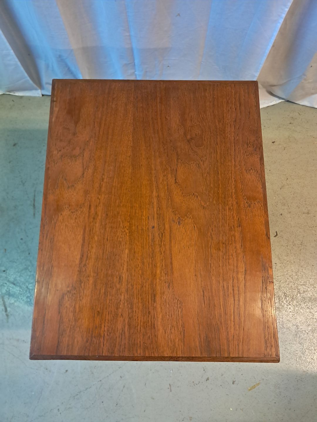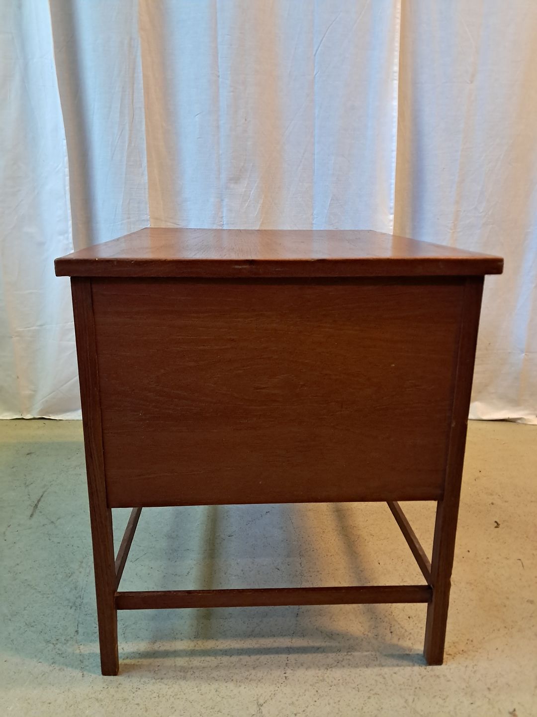 Kassemøbel i fineret teaktræ, fra 1960erne.Det har brugsspor og en defekt på det ene ben.