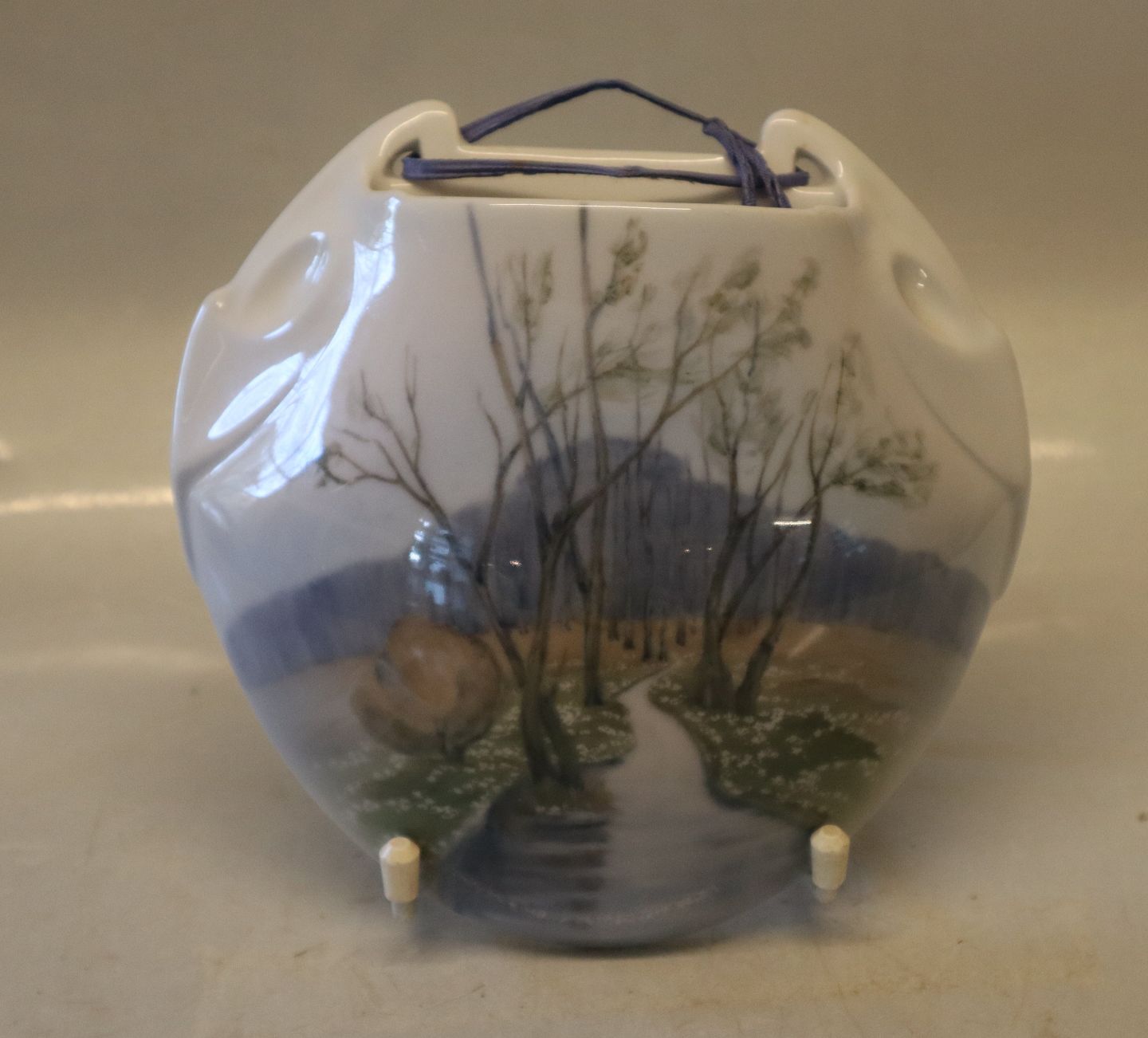 B&G 115-58 Art Nouveau vægvase - 18 x 18 cm træer langs bæk Bing & Grøndahl I fin og hel stand. Händler