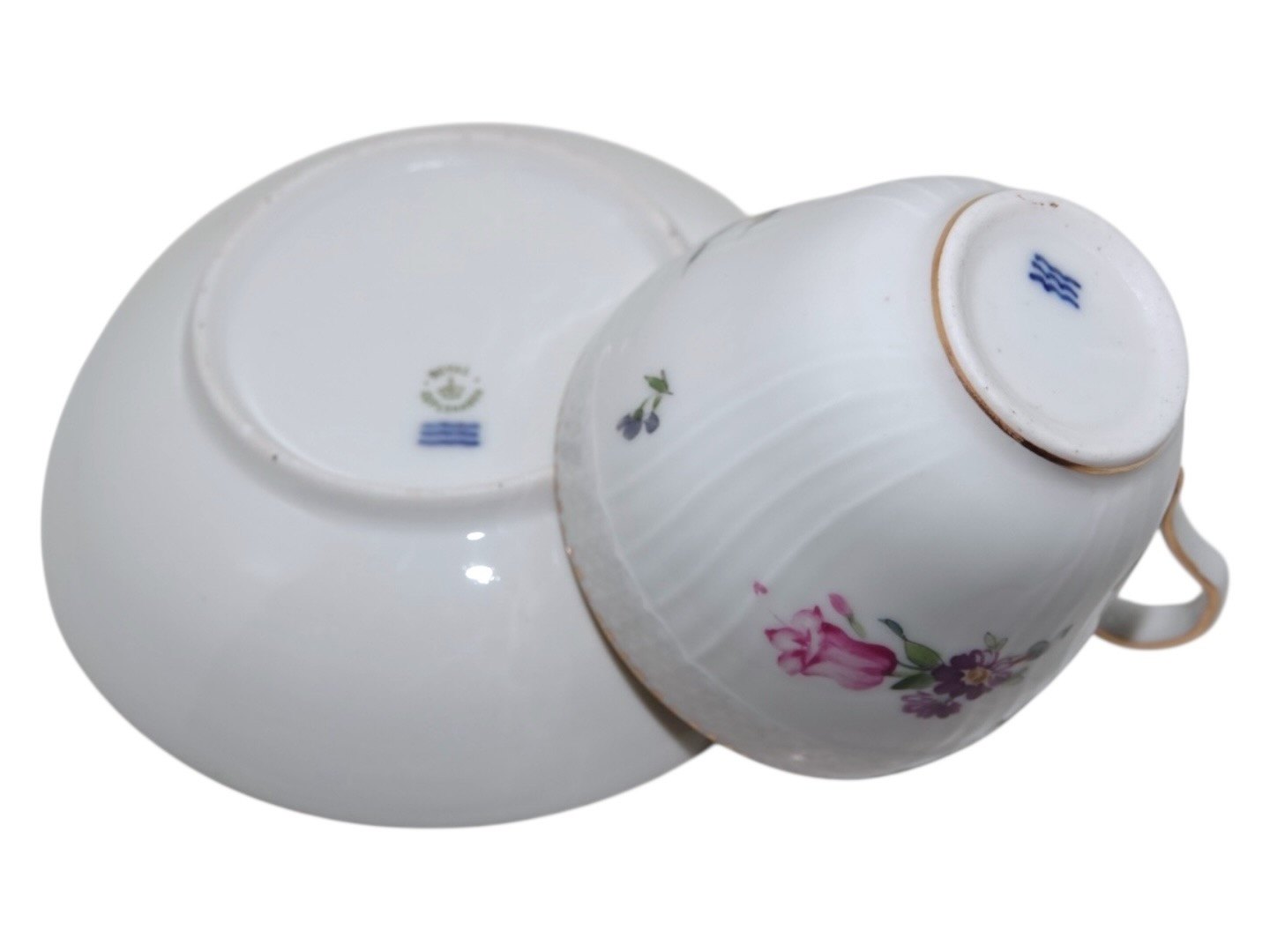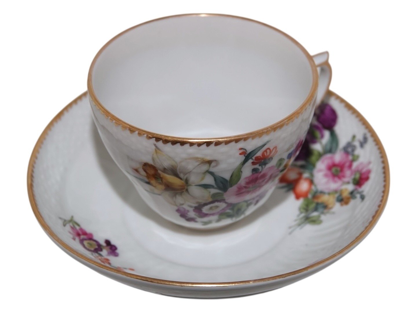Royal Copenhagen Fuld Saksisk Blomst, stor kaffekop med tilhørende underkop.1. sortering.