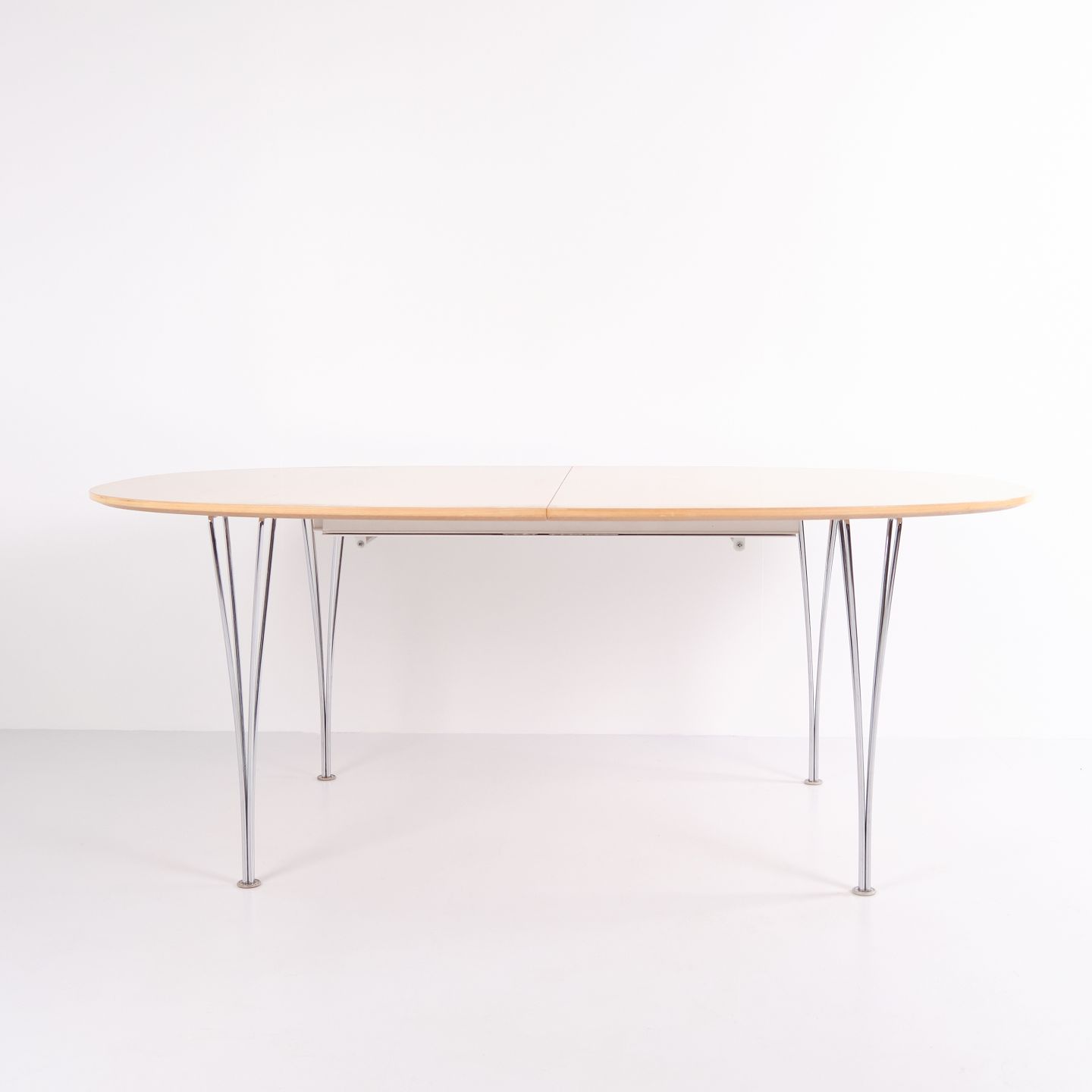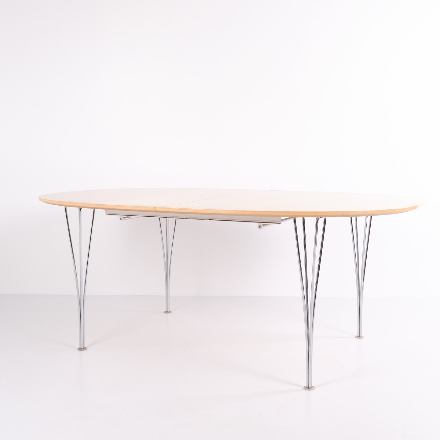 Super Ellipse Esstisch von Piet Hein & Bruno Mathsson für Fritz Hansen. Buchenholz mit 2 Einlegeplatten. Produziert 2001.— Designer: Piet Hein & Bruno Mathsson